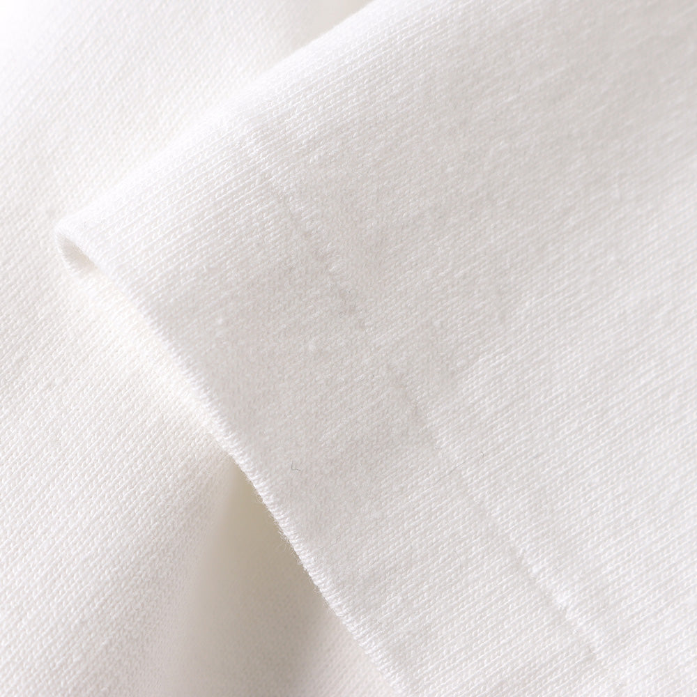 A jersey knit made from a blend of extra-long staple cotton waste. which has particularly long and beautiful fibers and is highly valuable. and organic extra-long staple cotton. and thick. air-spun yarn.