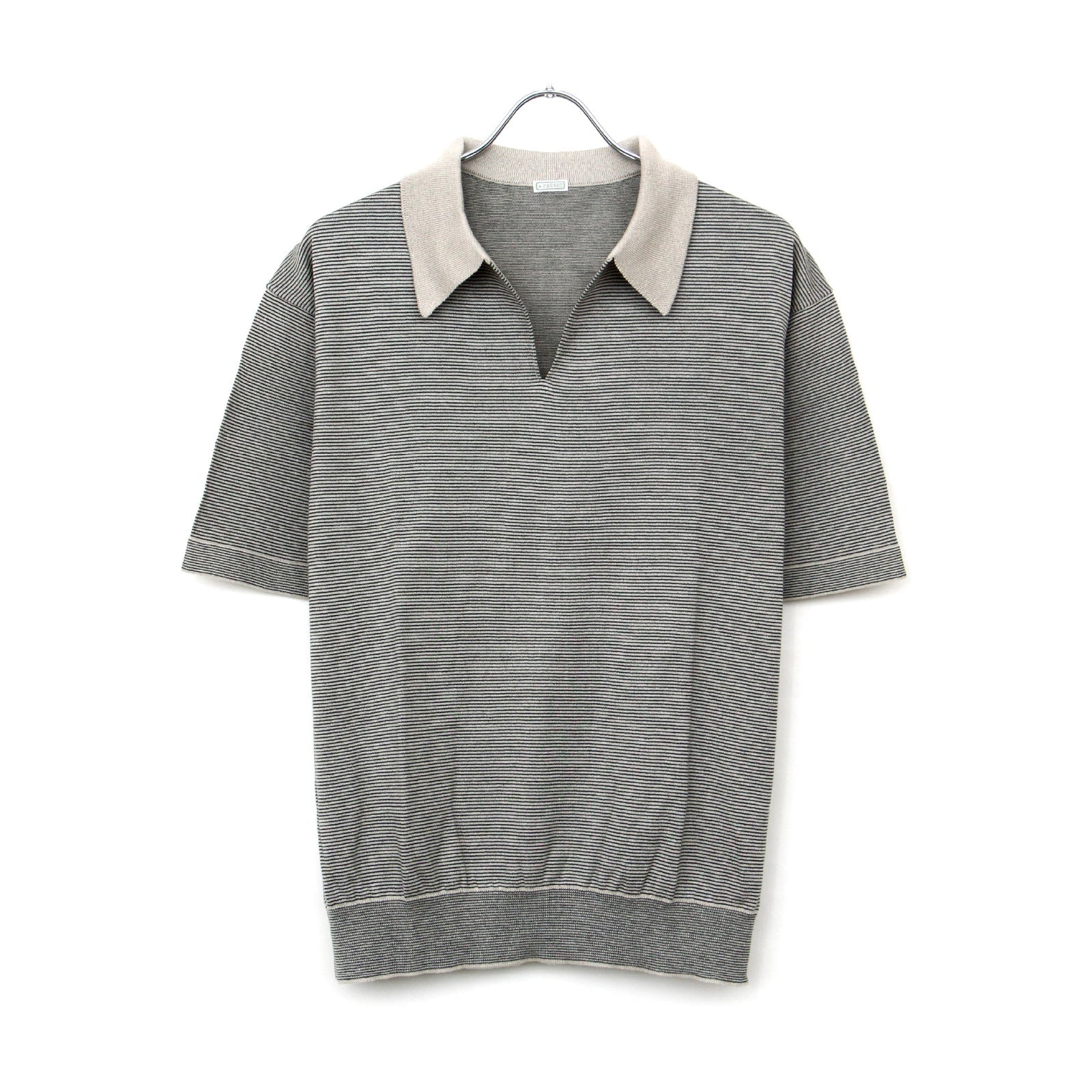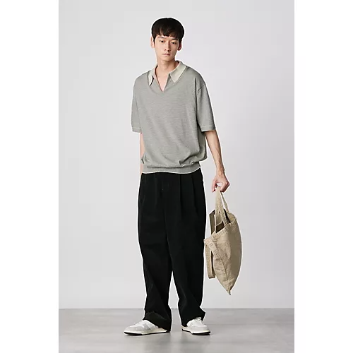 It retains the luster and smooth texture of Supima cotton and the soft texture of 16.5 micron wool. while featuring a clean texture achieved by using a compact yarn.