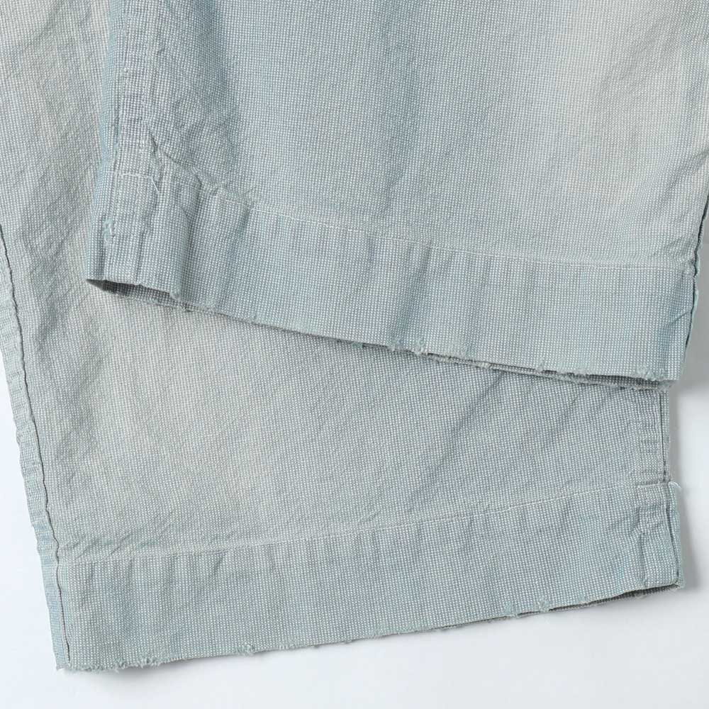 The warp thread is rope-dyed indigo. and the weft thread is a pin check fabric made of reactive dyed yarn.