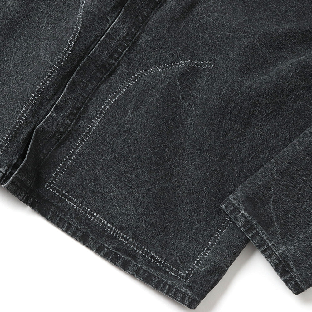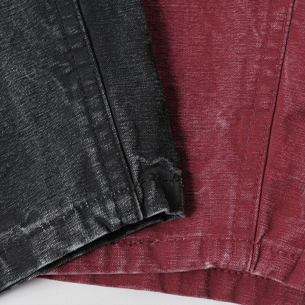 A special process creates random scuffs and marks on the fabric. and the product changes over time with wear. like denim. which gives it a more powerful look.