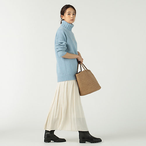 A basket bag made of leather that is woven together with leather. and can be used regardless of the season. and is loved by many fashionable professionals. The more you use it. the more you can enjoy the unique texture of leather. Some say. "The color and texture are of high quality. and the luxury price is also acceptable." The popular design remains the same. and a new color. greige. is added for the fall and winter of 2021. Also available in standard black. The balance of the large size makes it the main part of the cute styling.