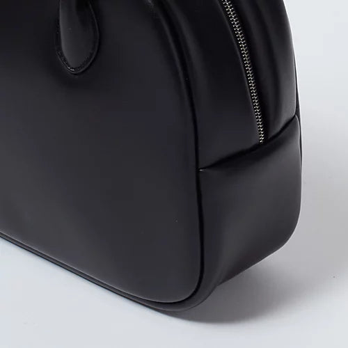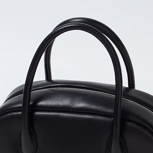 A small. slim Boston bag that can be used for any occasion. whether it's for everyday use or as a carry-on. Practical size that can store long wallets. smartphones. pouches. etc. Made of fine-grained. high-quality Spanish sheep leather. The zipper opens to the side. making it easy to put in and take out your long wallet. The lining is made of highly durable pigskin leather.
