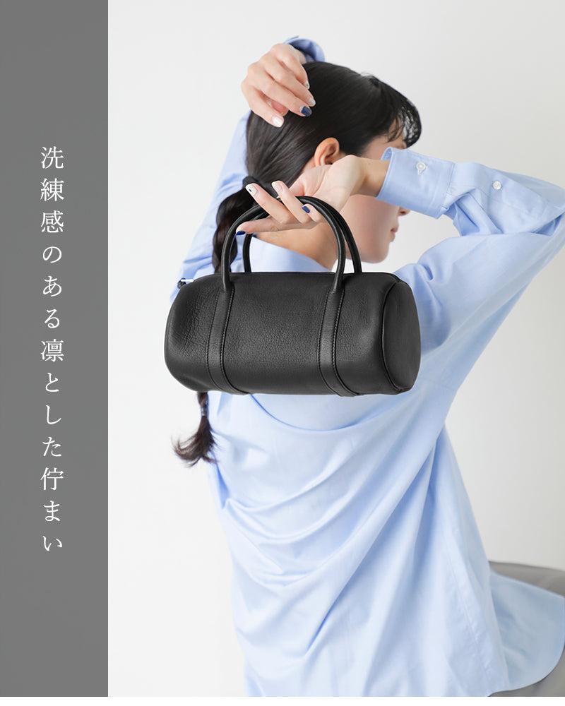 Introducing the "DEER" deer leather cylinder Boston bag from Aeta. The "DEER Collection" is a lineup perfected through repeated fine-tuning to create elegant and sophisticated products while taking advantage of the wild. powerful. and unique texture of deer leather. This cylinder-shaped Boston bag has a refined and dignified appearance. and is a carefully crafted item made from the finest deer leather. with stitching and other details carefully concealed as much as possible.