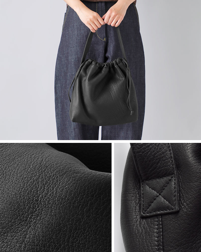 This small-sized shoulder bag is typical of Aeta and matches stylish adult outfits. The soft form of the bag is made of supple and soft deer leather. making it attractive. The short shoulder strap allows you to carry it smartly either by hand or over the shoulder. A sophisticated item that can be used all year round. It can be used by both men and women.