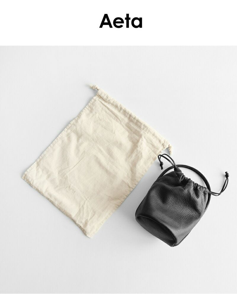 A pouch that creates a minimalist and sophisticated look using supple deer leather with a grained texture. A stylish design that combines a round-bottomed drawstring body with one handle. The opening is wide. so you can easily put in and take out your belongings. It is about the height of a 350ml PET bottle. and is the perfect size to neatly store your essentials when going out. It has a card-sized pocket on the inside. making it easy to use.