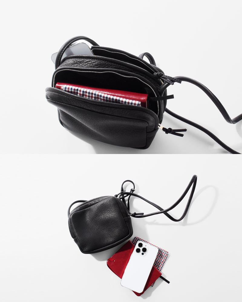 This mini shoulder bag is very popular for its well-organized two-compartment design. The iconic square shape with a zipper creates an excellent balance between casual and modern. The length of the strap is adjustable. so you can carry it in a variety of ways. from one-handle to shoulder to crossbody!
