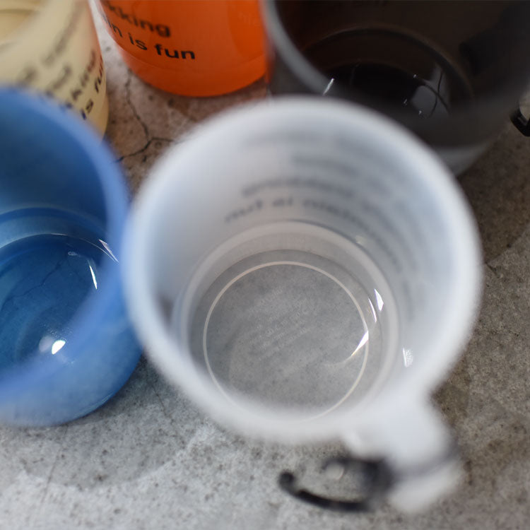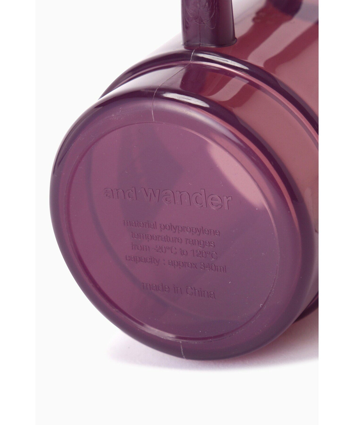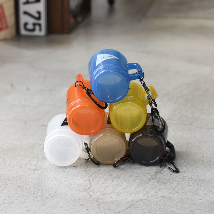 A lightweight BPA-free polypropylene mug with the and wander logo printed on it.