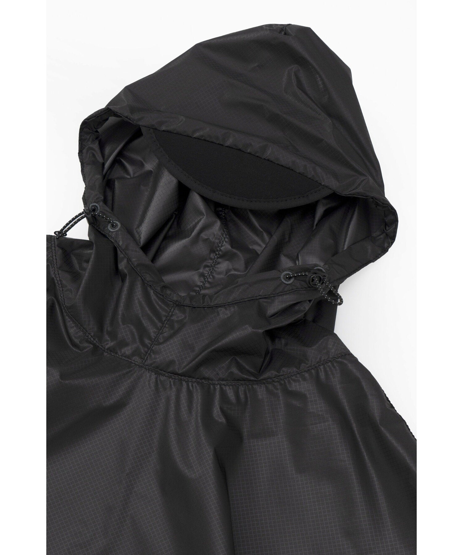 By passing your thumb through the loop on the back of the front body. you can prevent the poncho from rolling up when exposed to the wind from the front. such as when riding a bicycle.