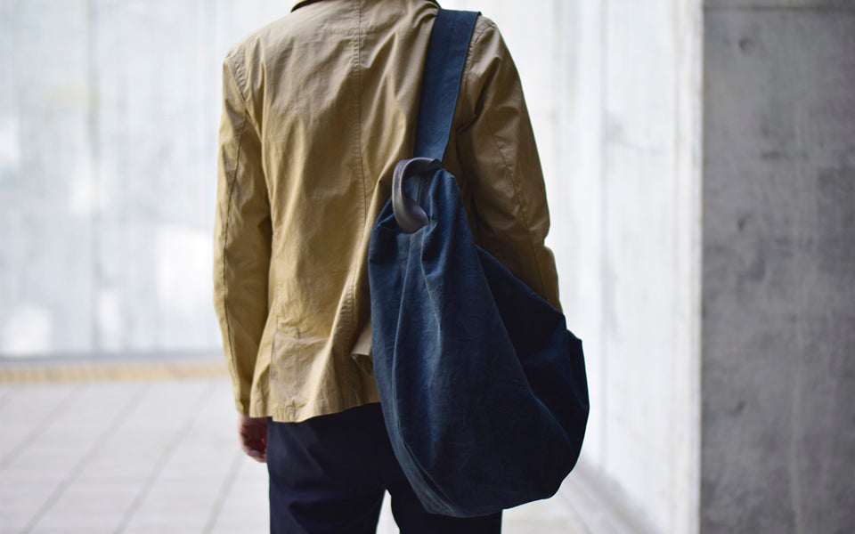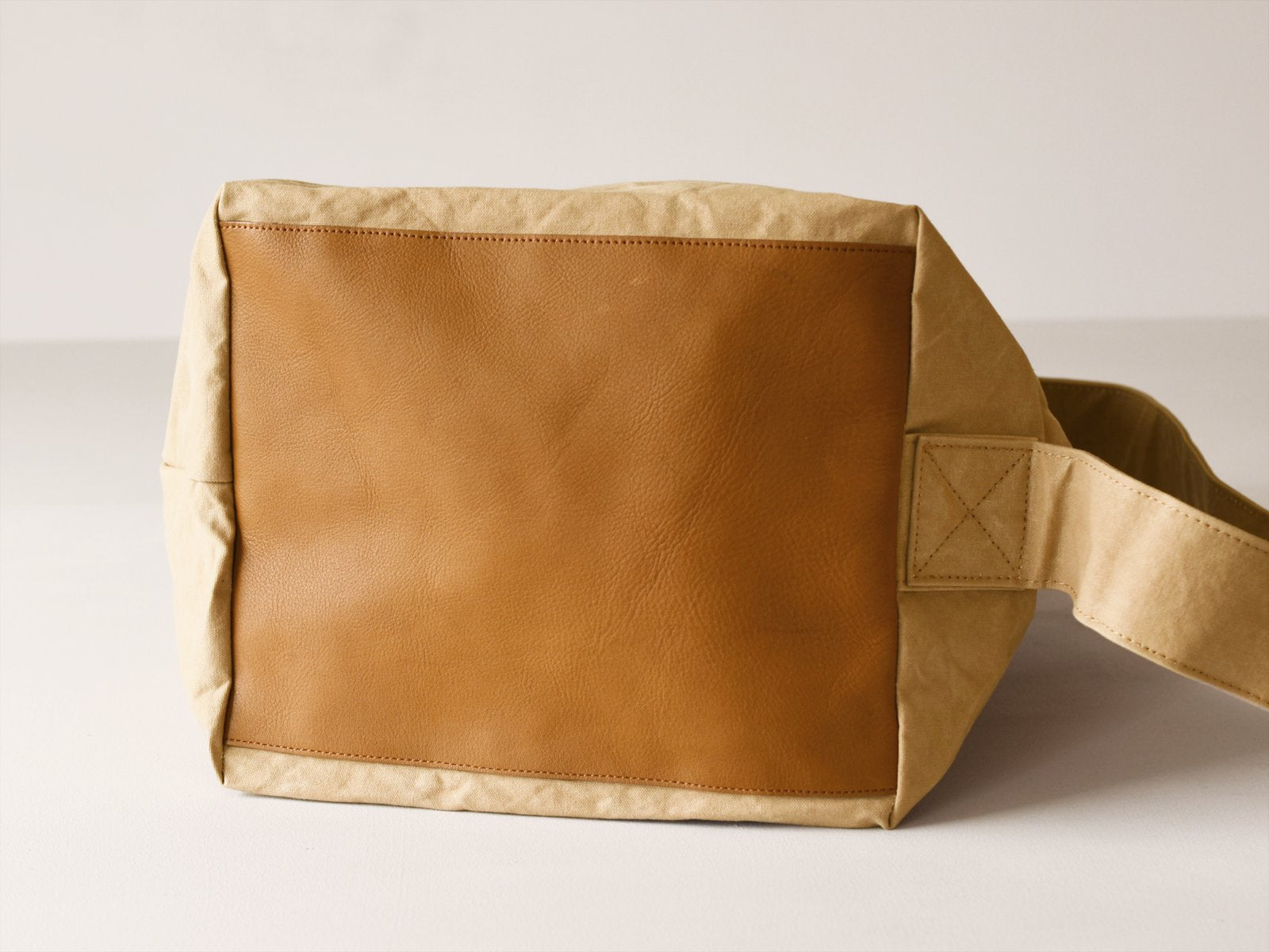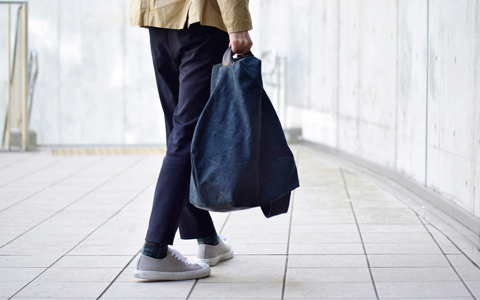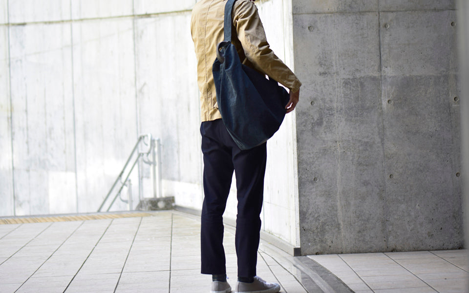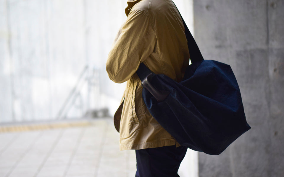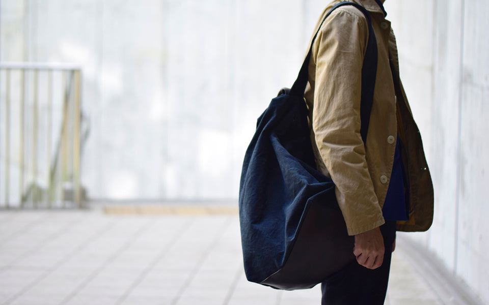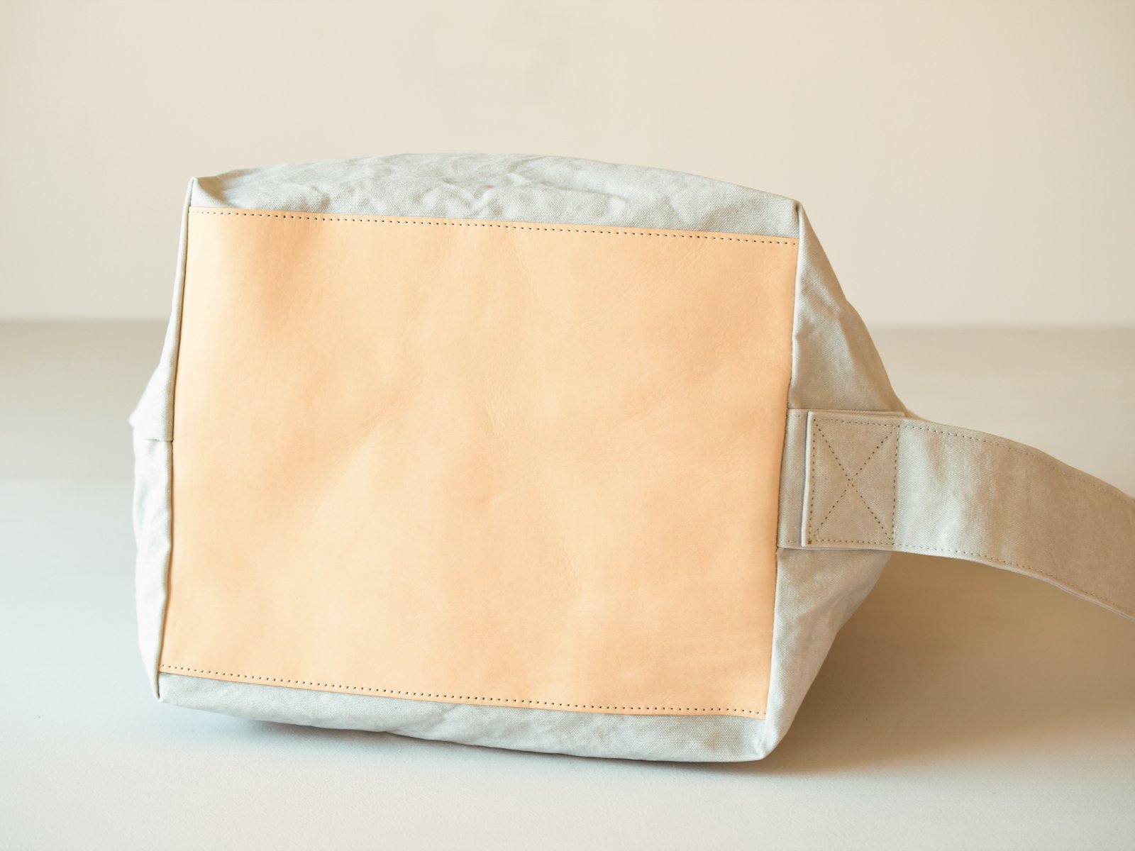 This is a 2-way shoulder bag with a pear-shaped bottom and a stable feel. The wide shoulder straps are easy on the shoulders. and the short handles with the logo stamped on them and the bottom are made of cowhide. 9G canvas is durable and lightweight. and the more you use it. the more it will fit to your body.