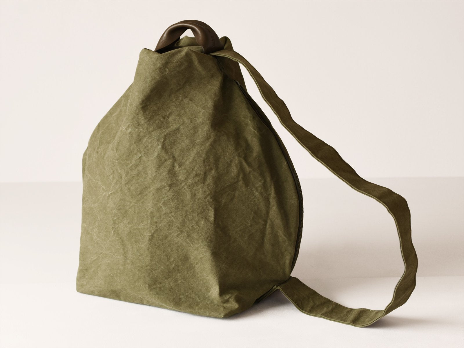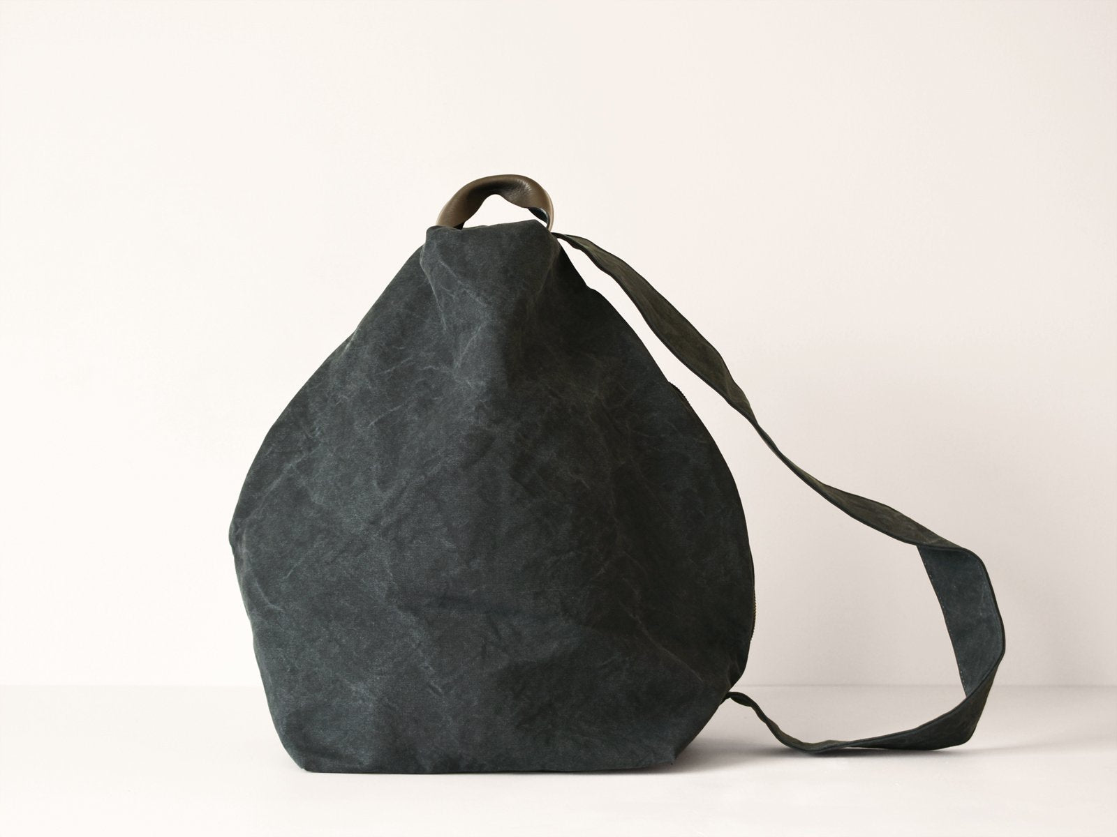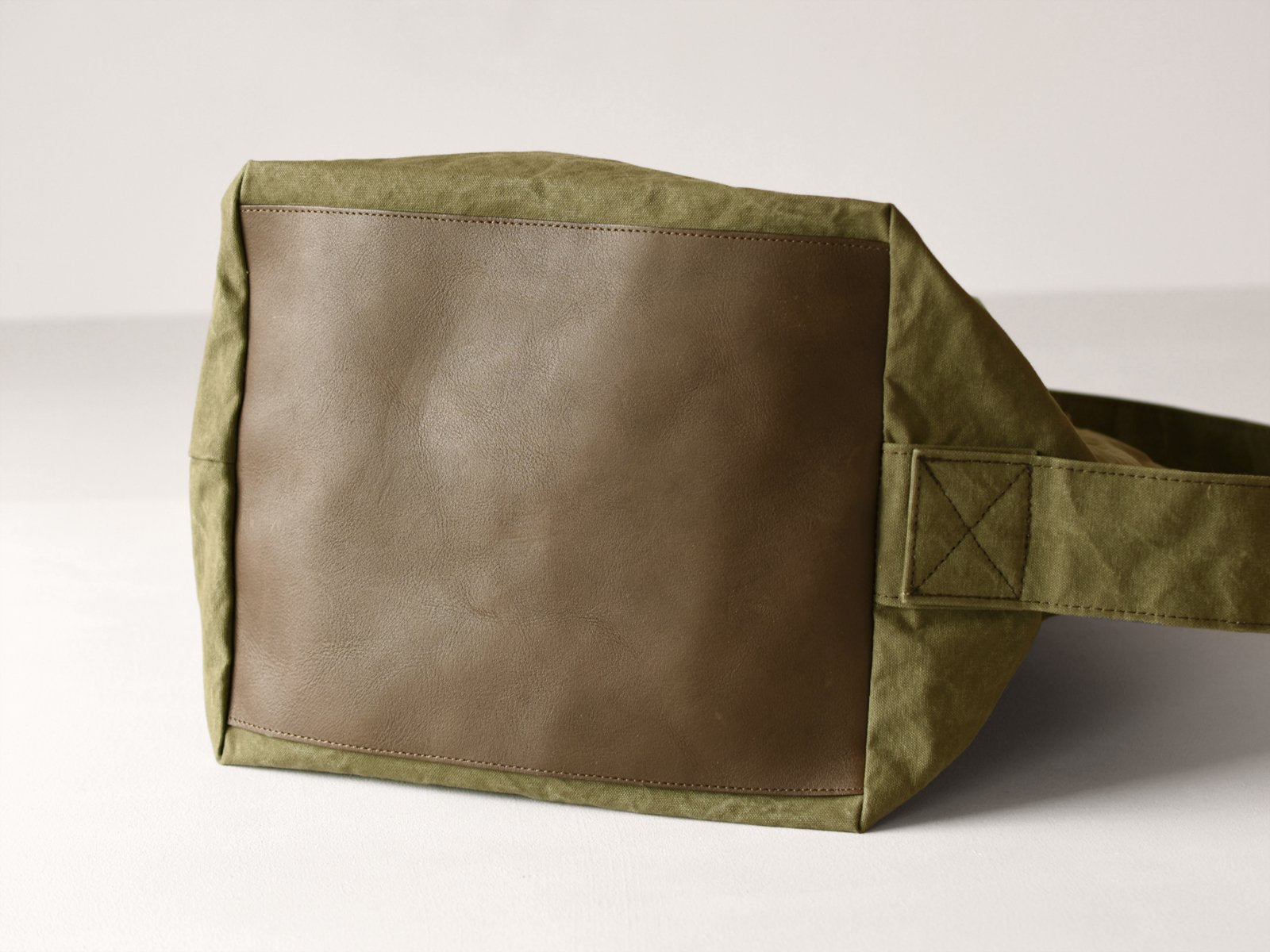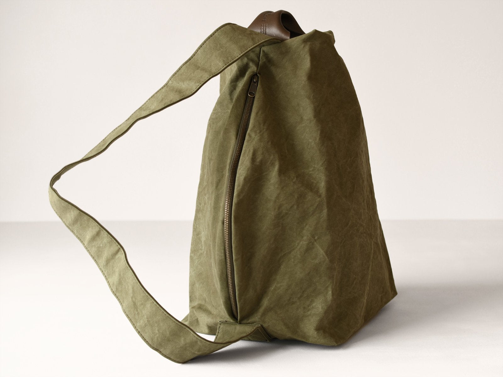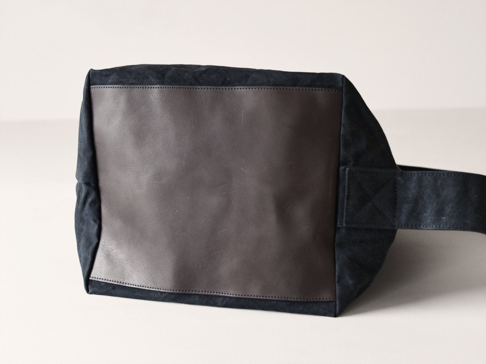 This is a 2-way shoulder bag with a pear-shaped bottom and a stable feel. The wide shoulder straps are easy on the shoulders. and the short handles with the logo stamped on them and the bottom are made of cowhide. 9G canvas is durable and lightweight. and the more you use it. the more it will fit to your body.