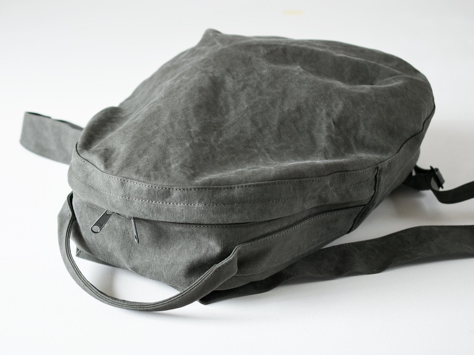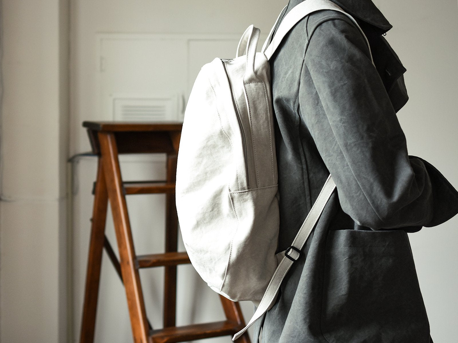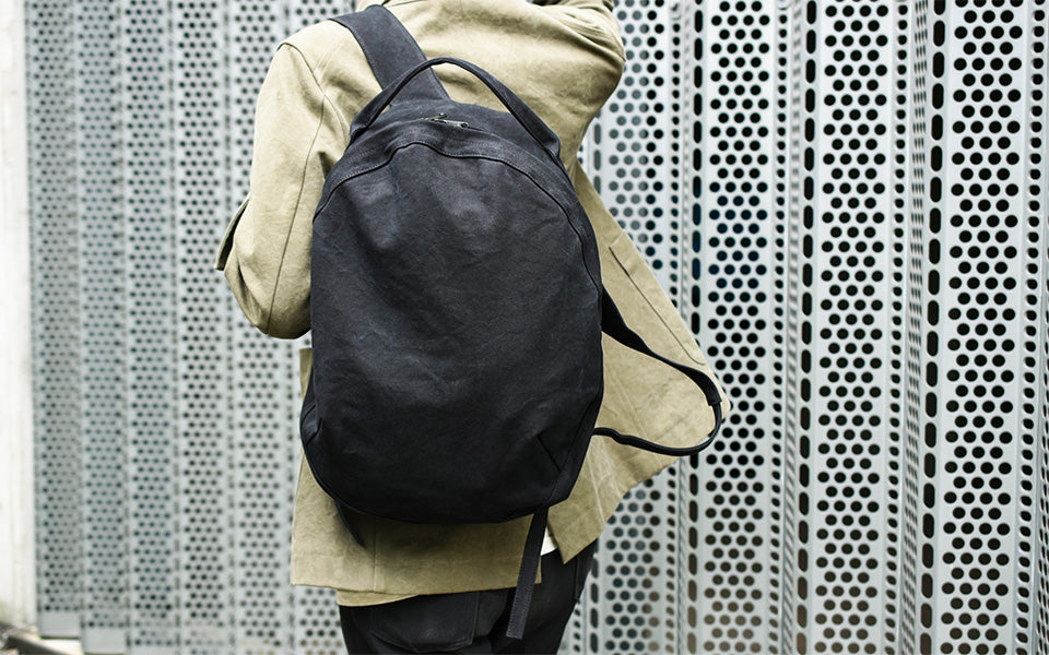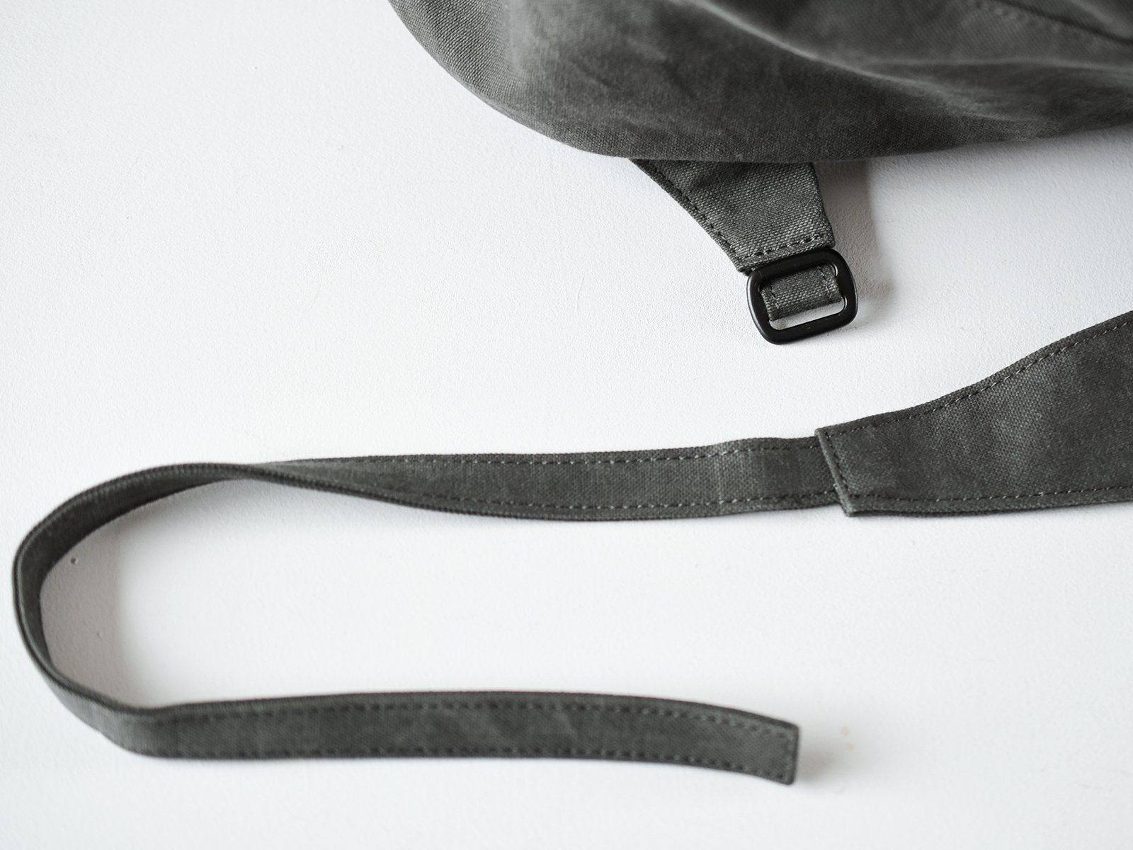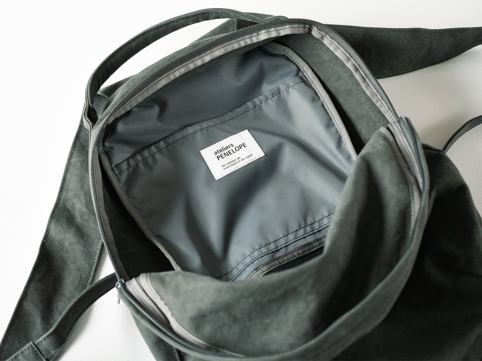 This daypack is made of original French military cotton material. inspired by the fabric of the French Army rider coats of the 1920s. It is named Cocoon because it looks like a rounded cocoon. The simple design has been stripped of all unnecessary elements. and details have been added with stitches and tucks to create a three-dimensional form that makes the most of the texture of the material.