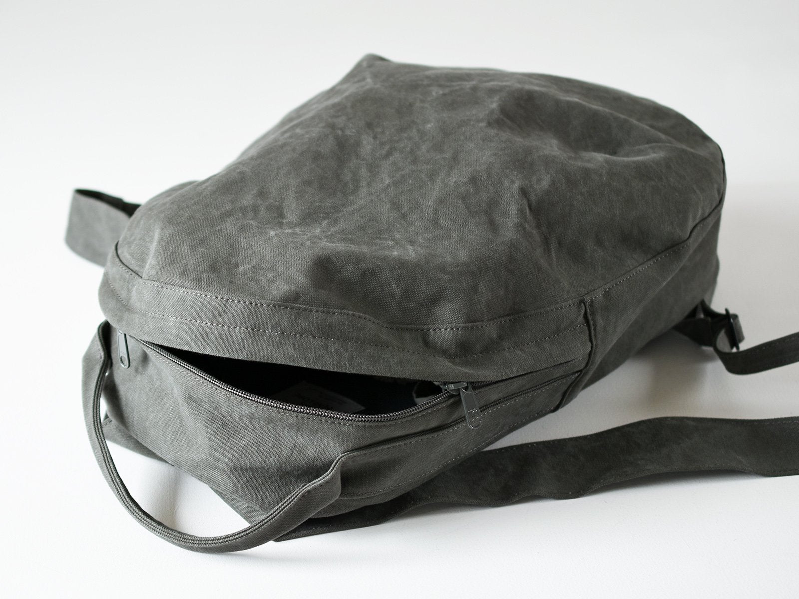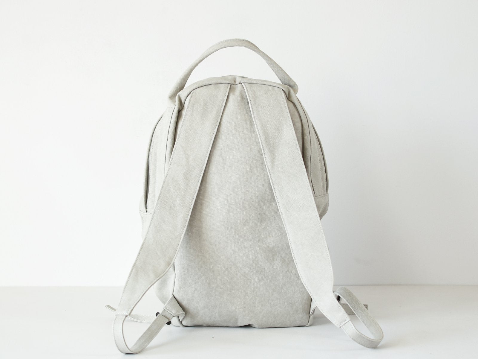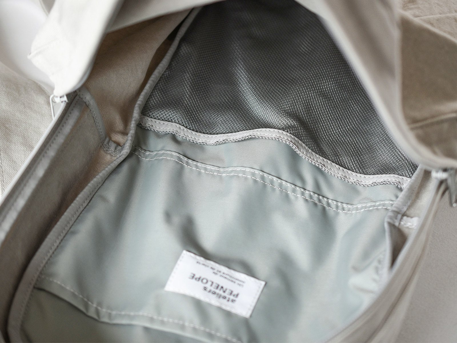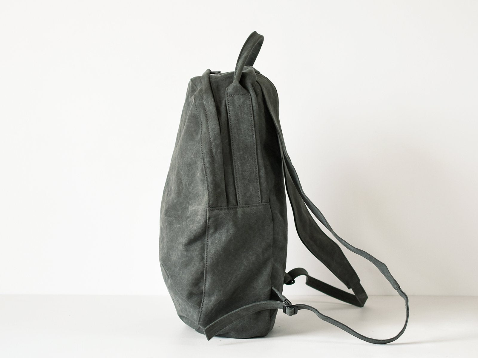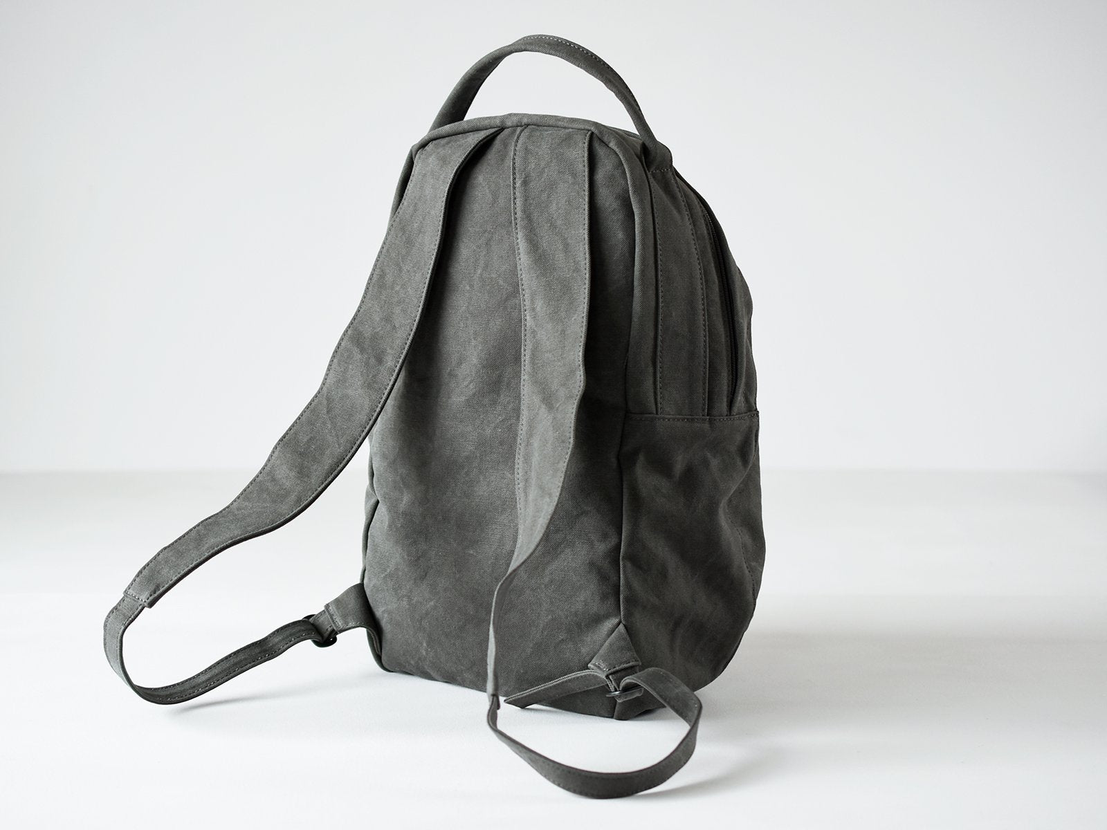 This daypack is made of original French military cotton material. inspired by the fabric of the French Army rider coats of the 1920s. It is named Cocoon because it looks like a rounded cocoon. The simple design has been stripped of all unnecessary elements. and details have been added with stitches and tucks to create a three-dimensional form that makes the most of the texture of the material.
