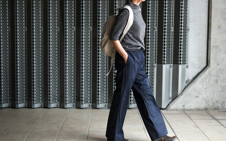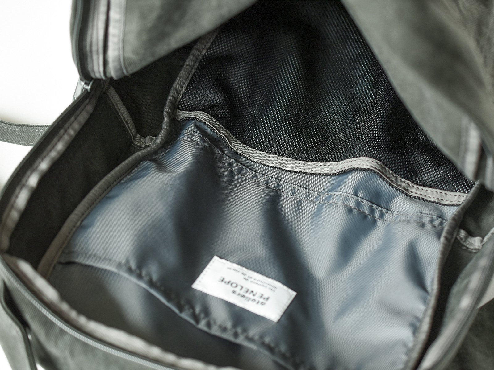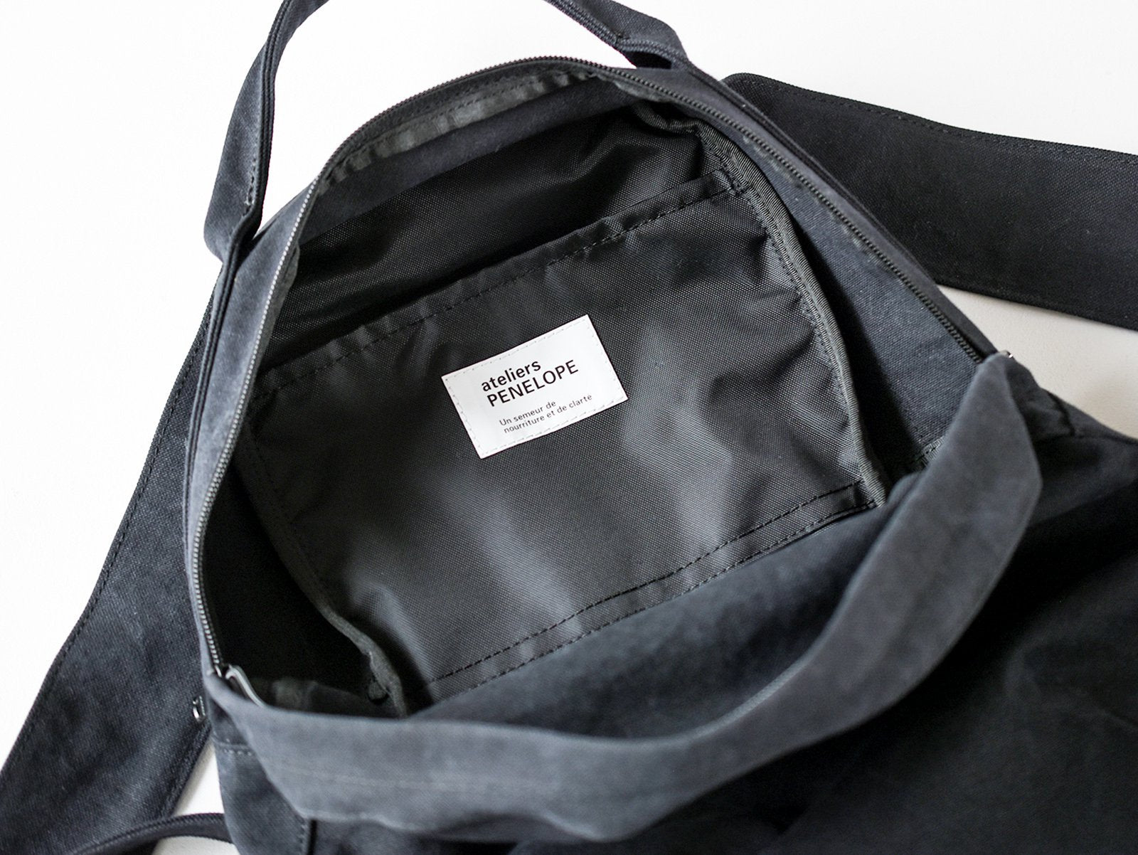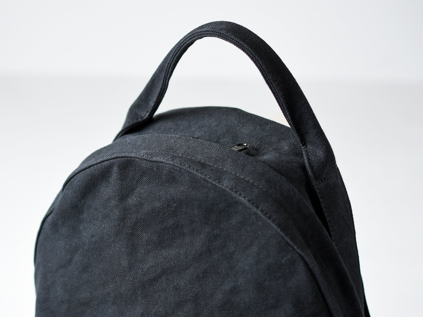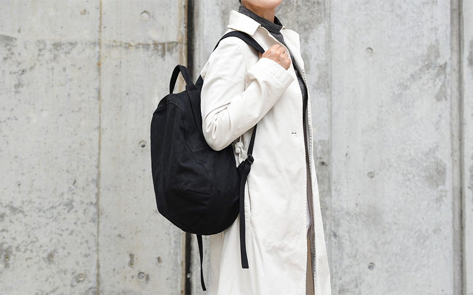 This daypack is made of original French military cotton material. inspired by the fabric of the French Army rider coats of the 1920s. It is named Cocoon because it looks like a rounded cocoon. The simple design has been stripped of all unnecessary elements. and details have been added with stitches and tucks to create a three-dimensional form that makes the most of the texture of the material.