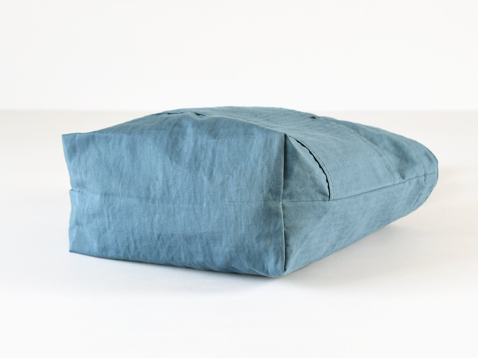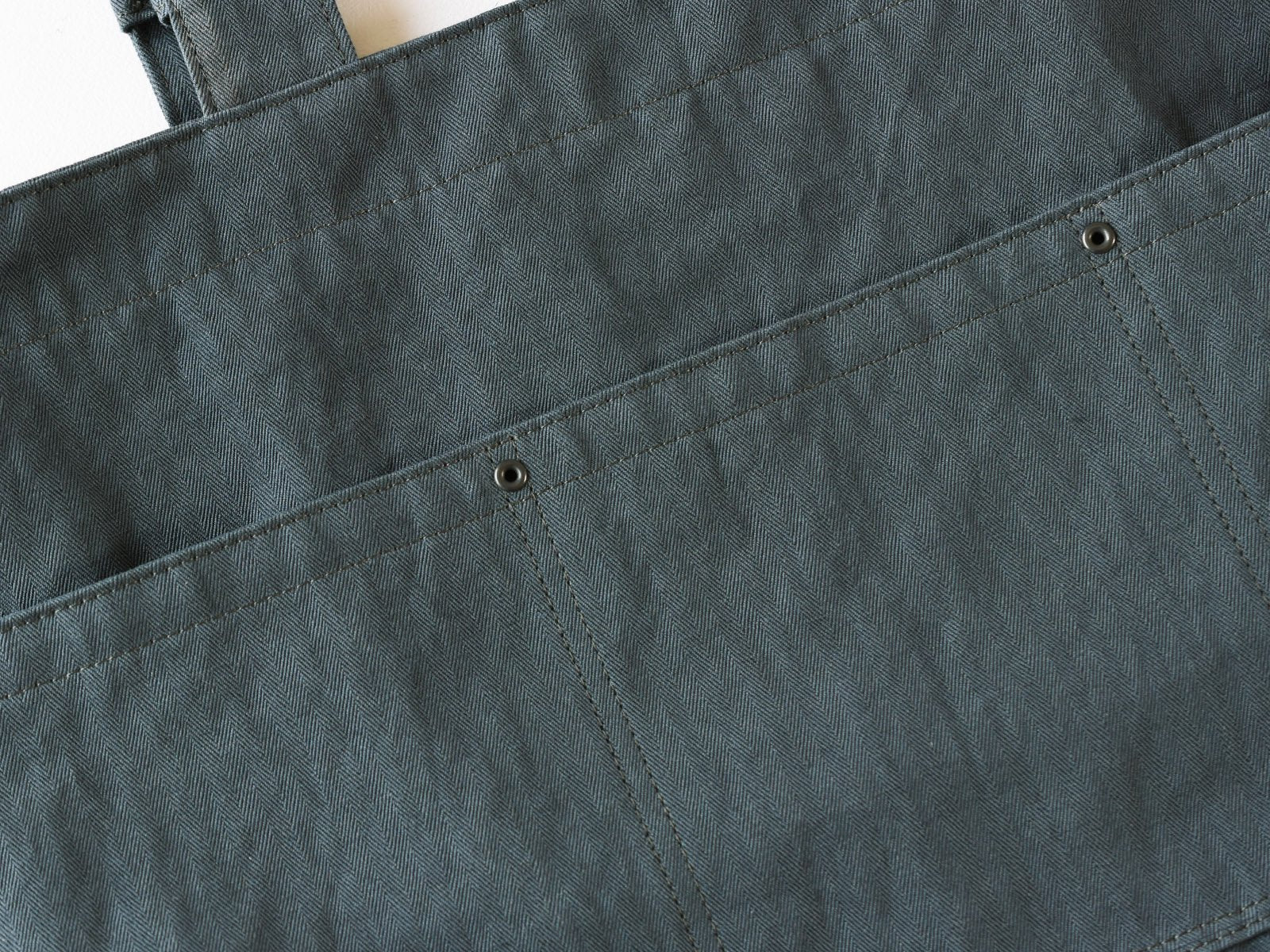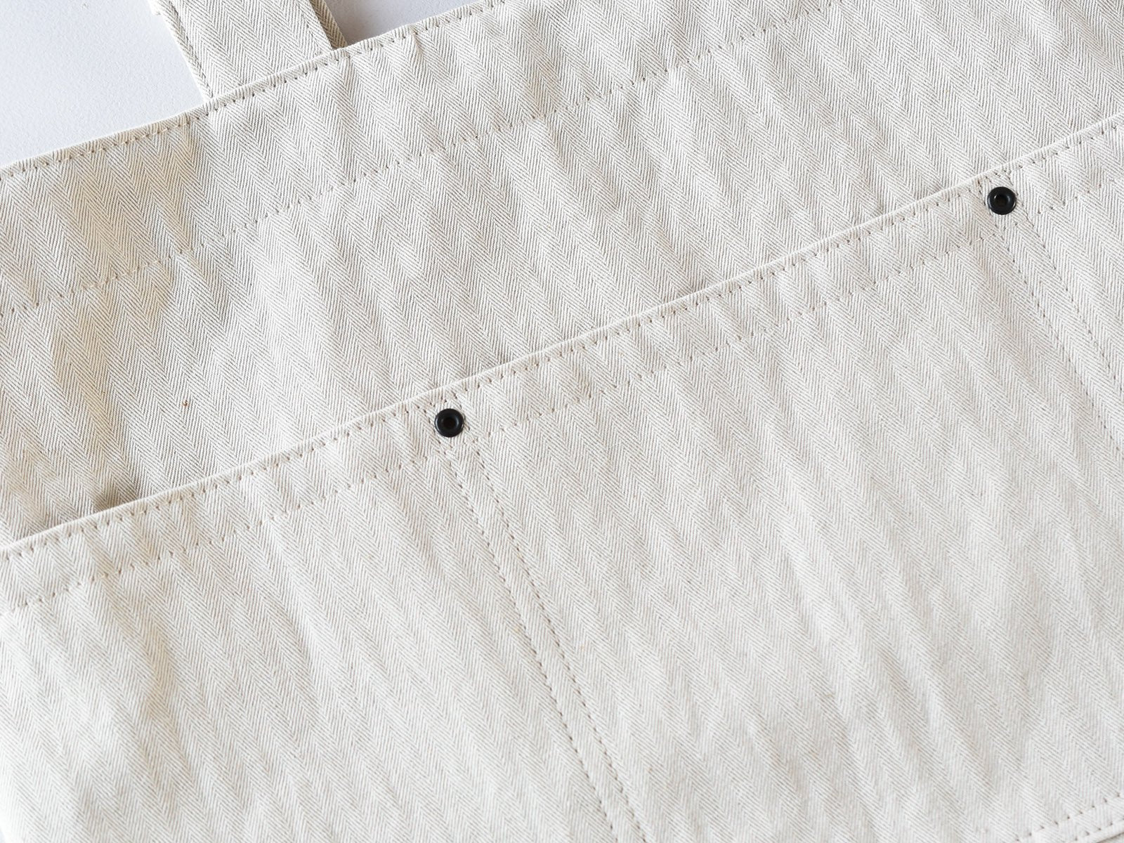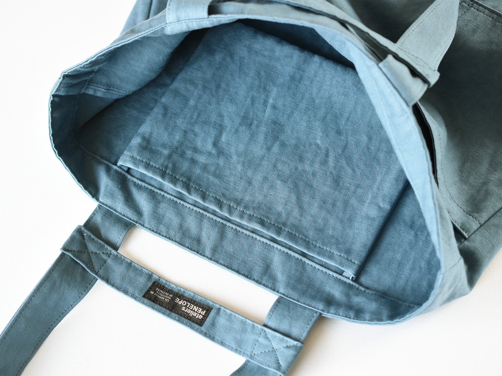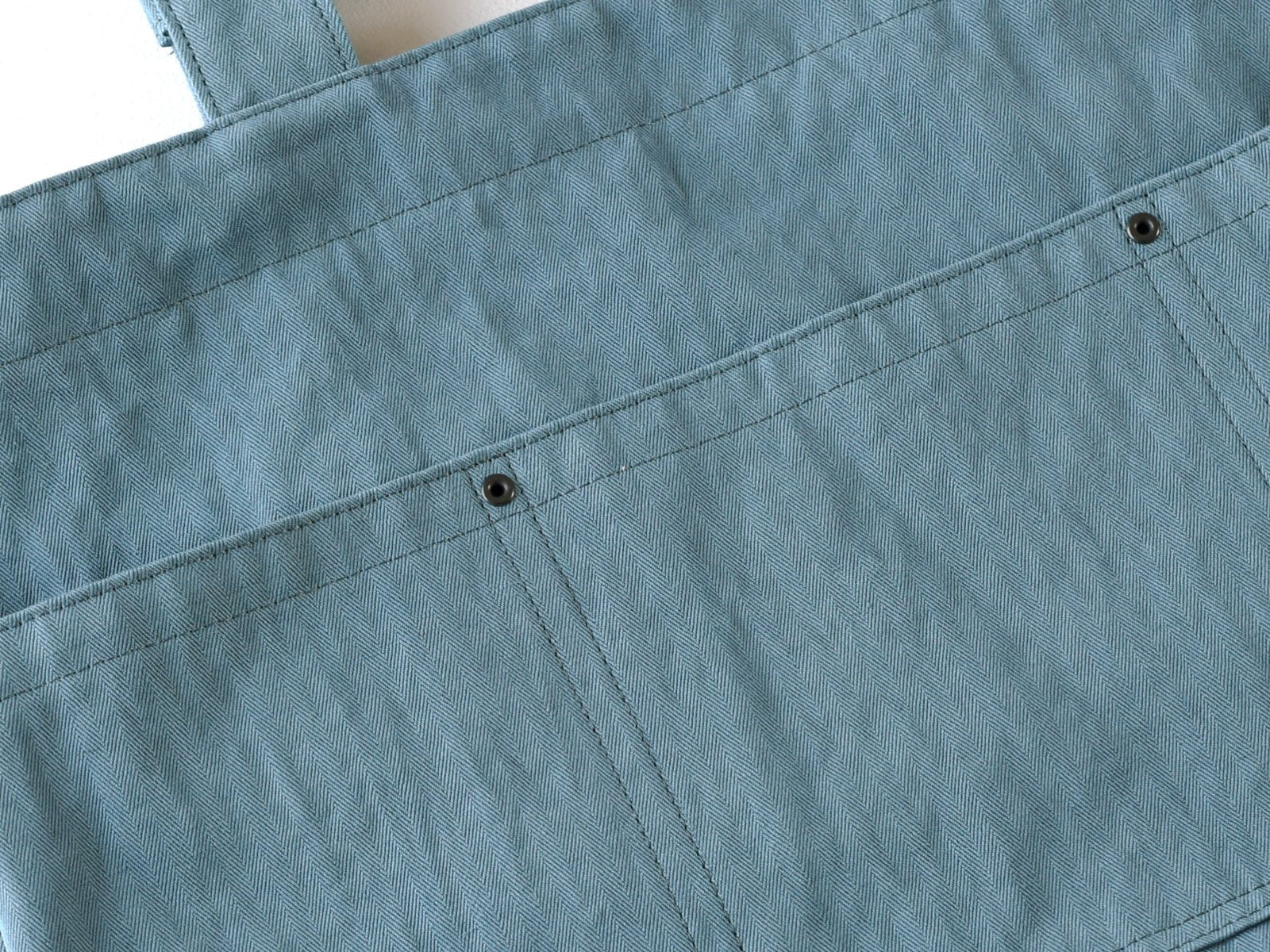 The tote made of cotton linen herringbone has a 2-way design with an integrated shoulder and handle. The front has a divided pocket for easy access to keys. cell phone and other small items. It is washable and can be used as an everyday tote for grocery shopping.