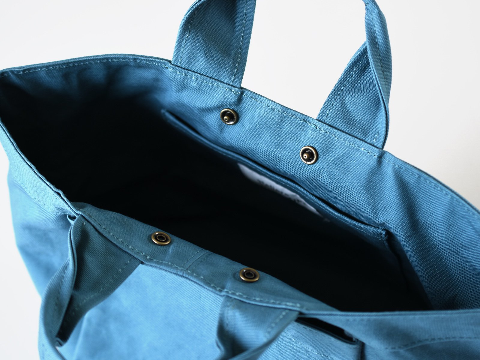 This is a standard day tote made of two pieces of No. 10 paraffin canvas. The decorative pocket with hooks on the front of the body is not only a design accent. but also convenient for storing small items that you want to take out quickly.
