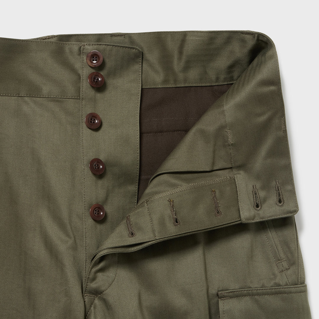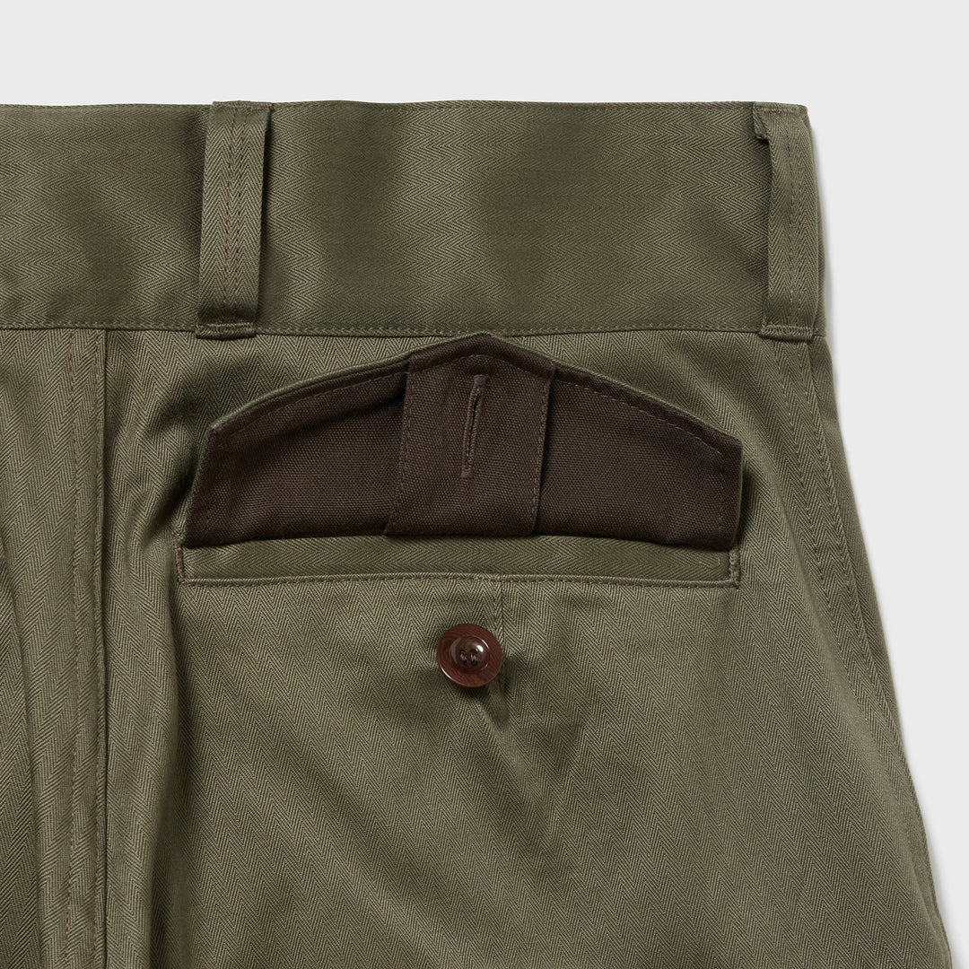 Design: From now on. we are making the standard M47 and M52 into two silhouettes. called early and late. for the wide and tapered eras. This EARLY47 has an early wide silhouette. a thick waist belt. and two buttons. "