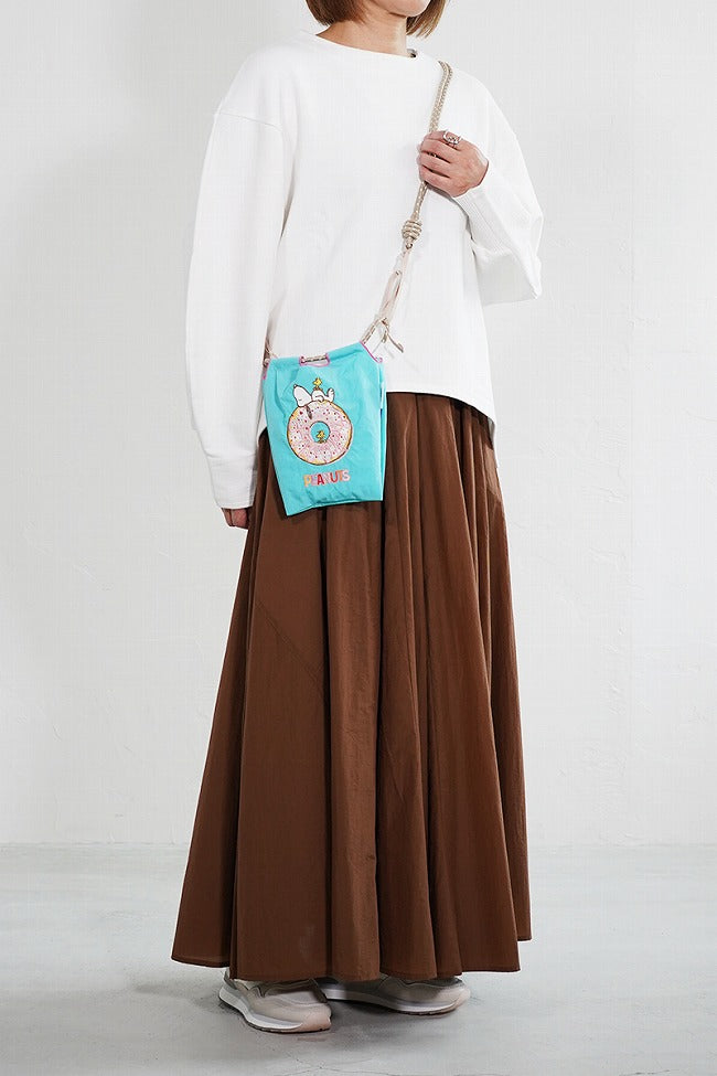 A playful mini shoulder bag with adorable Snoopy sleeping on a donut.
