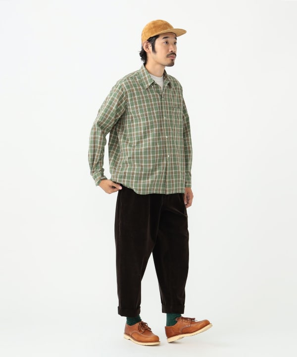 These 2-pleat trousers have a coin pocket with a flap. giving them a more traditional style. This is the corduroy version of the best-selling item. BEAMS PLUS 2 Pleats Twill Pants.