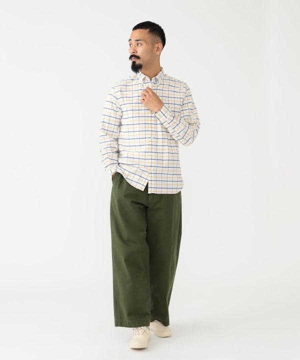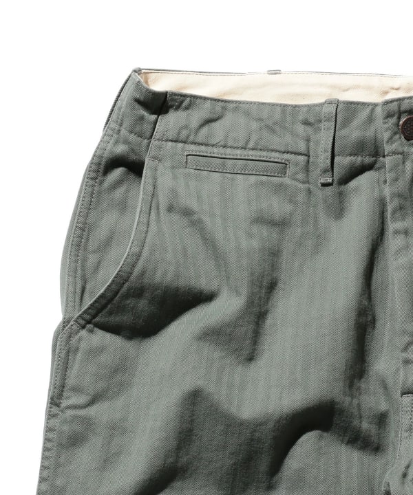 BEAMS PLUS military trousers feature a wide silhouette and dense herringbone twill fabric. Designed based on the 1940s US military fatigue pants. The tough and simple details will never tire of your use. The moderate wrinkles and puckering created by washing the product after production give it a vintage-like finish.
