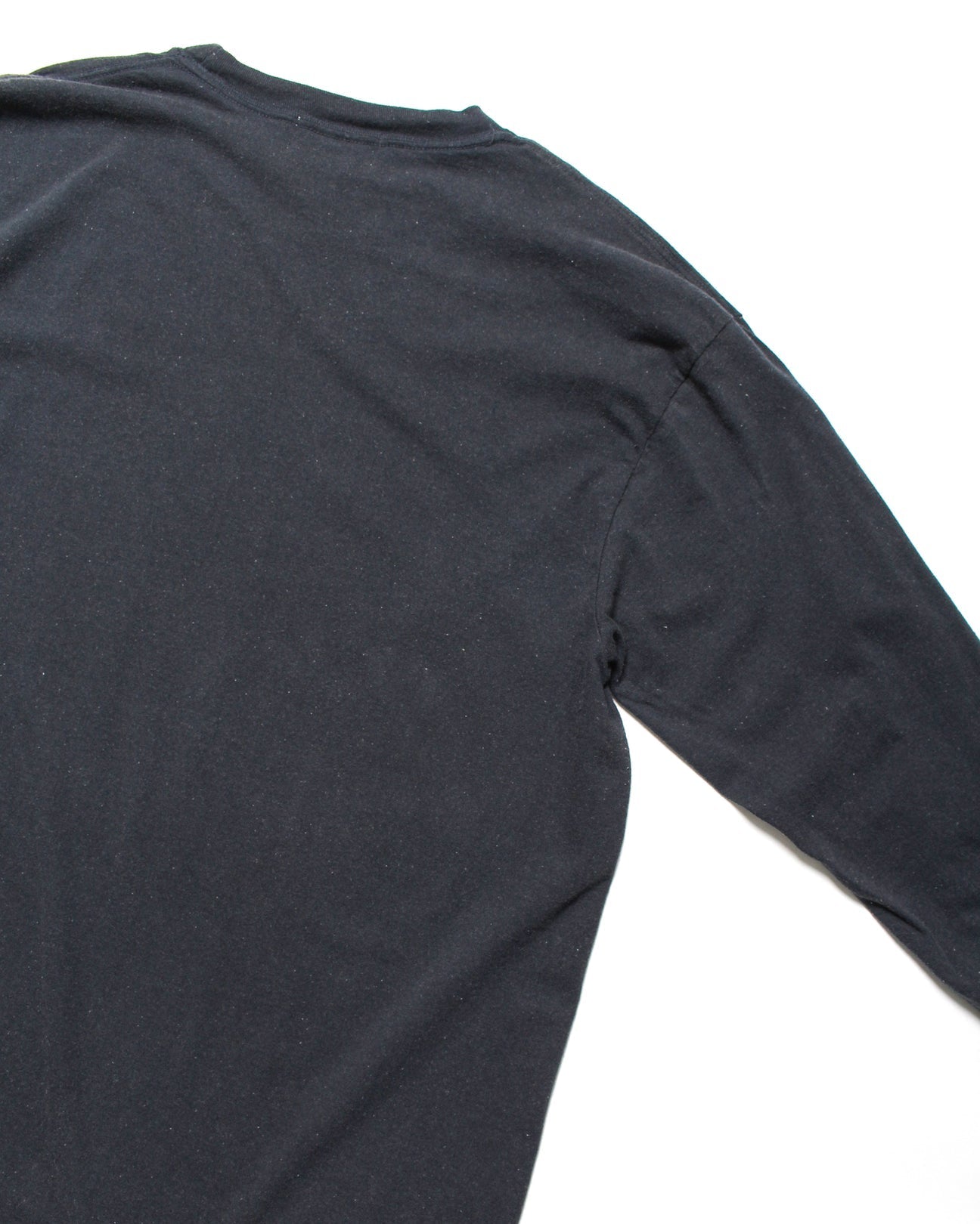 BOW WOW's popular processed long sleeve T-shirt andthe flocky print finished with a vintage look . the technique is difficult to express in the modern age. and it gives off a special aura. This is a technique that is considered difficult to express in modern times. and has resulted in a piece that gives off a special aura.