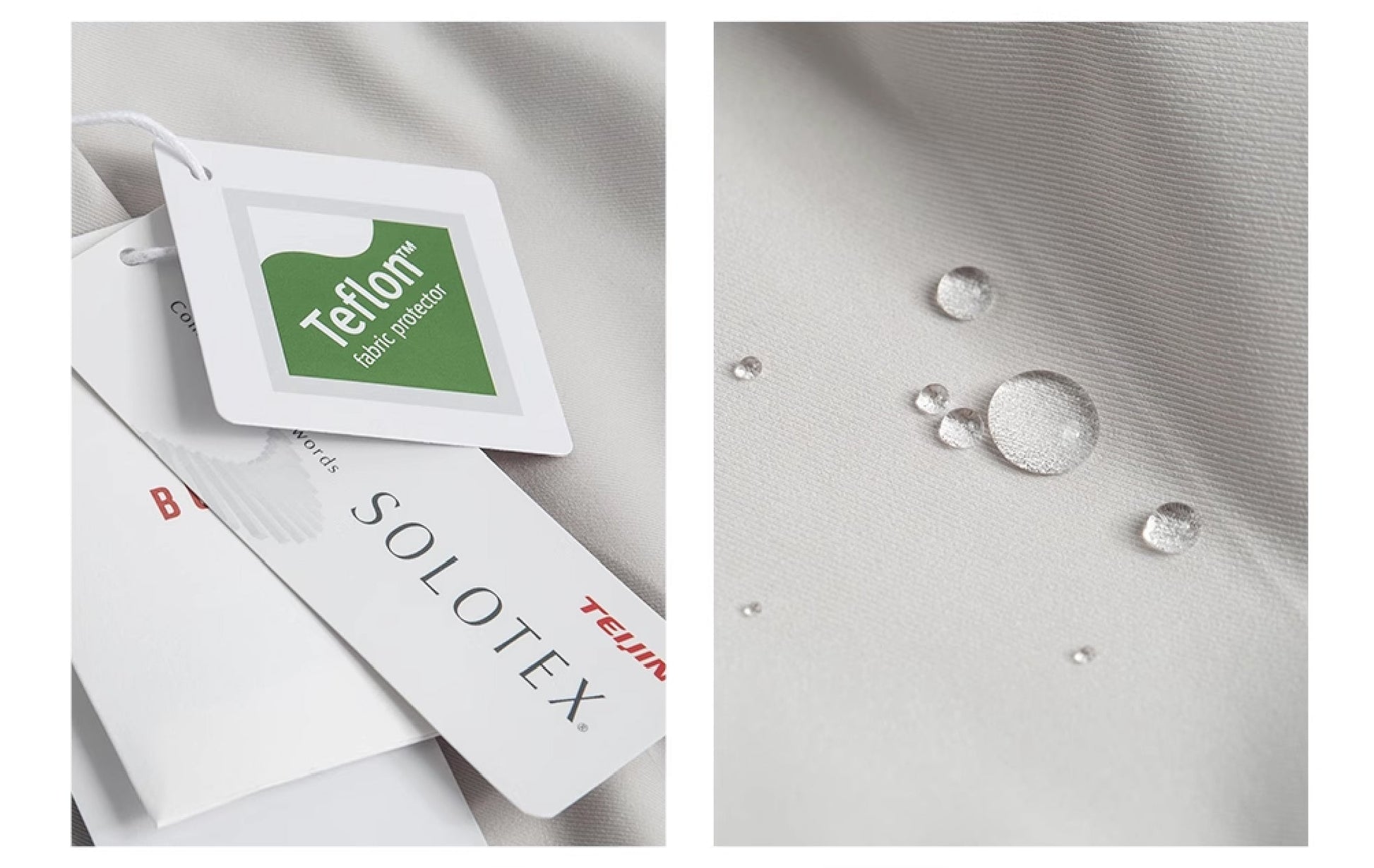 When wearing these simple commuting pants. you don't have to worry about sudden rain or accidentally splashed coffee. The Teflon three-proof coating allows you to stay clean and neat in any situation and calmly deal with daily challenges.