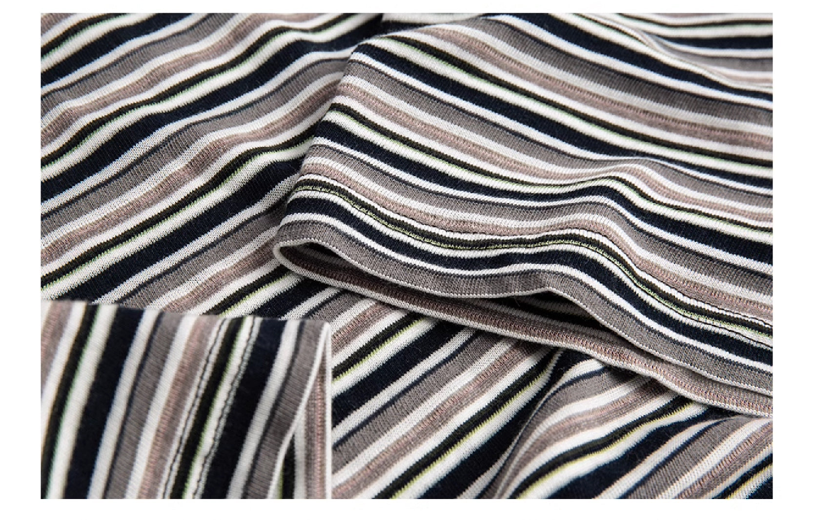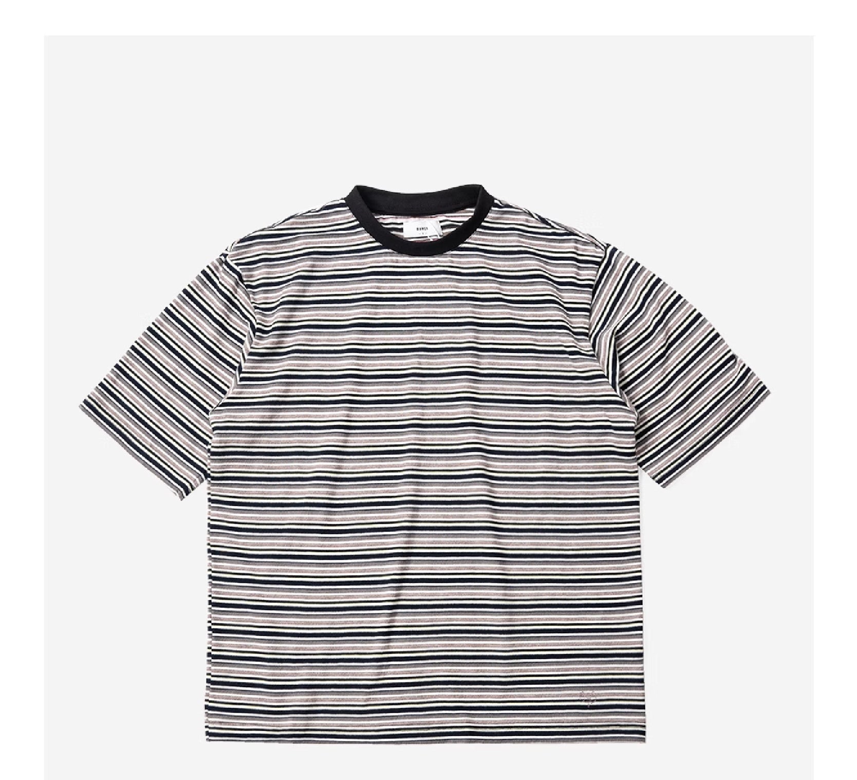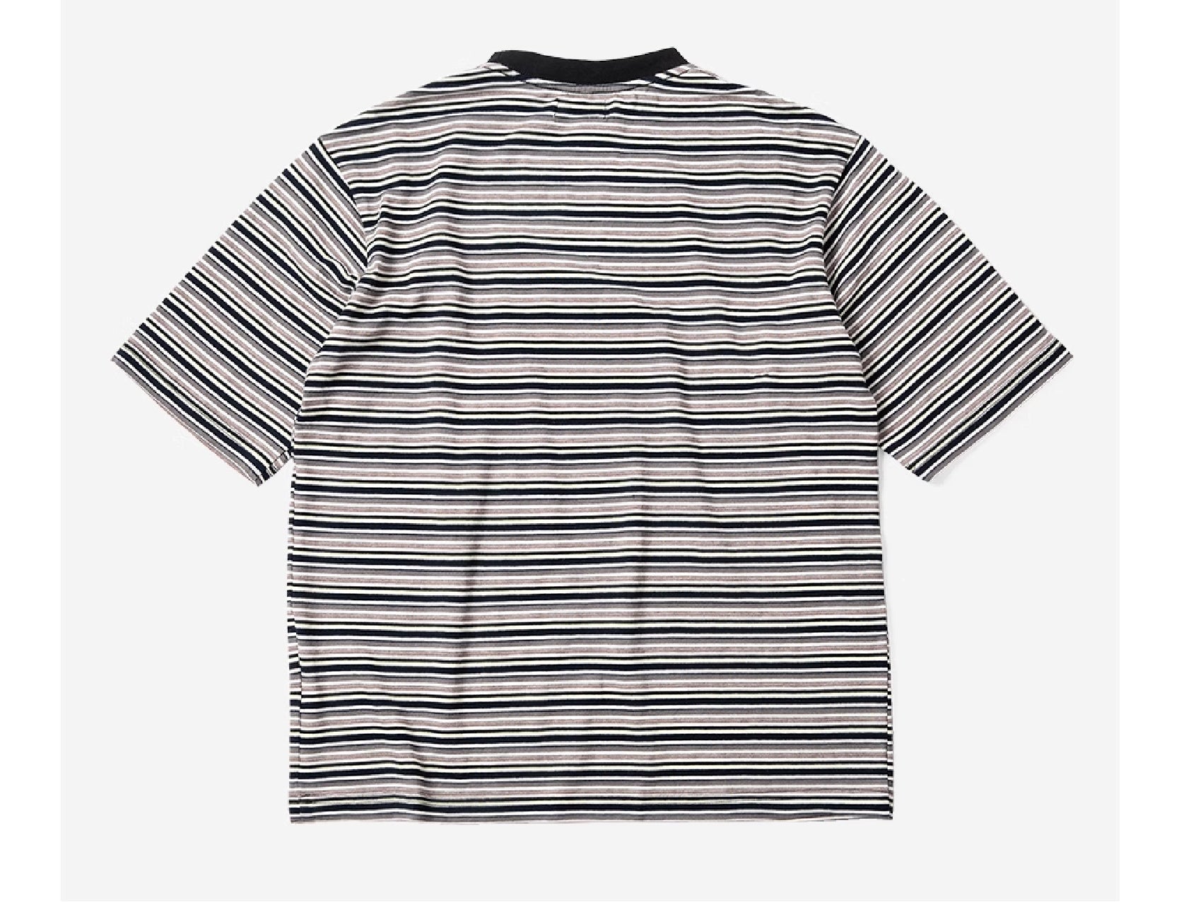 Tencel striped men's T-shirt has become a must-have item in the summer wardrobe with its unique fabric properties. The Tencel component used not only brings a cool wearing experience. but also has excellent breathability. effectively wicks away sweat and keeps the skin dry. It feels soft and has a light texture. making it light and burden-free to wear. showing the modern man's dressing concept of both fashion and comfort.