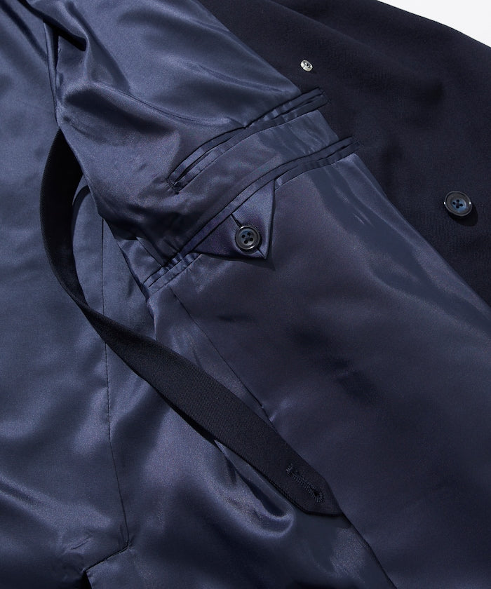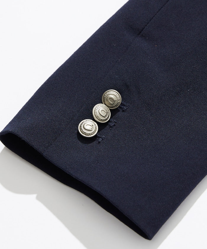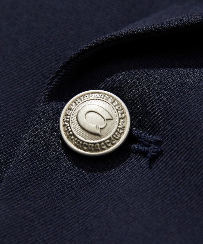 As I mentioned before about blazers. blazers should be treated like sweatshirts. worn hard. and treated roughly. Jack from Rowing Blazers in New York once told me this. For example. a blazer is one that is half-torn from playing wrestling. He pointed to a photo of himself wearing a tattered blazer. It's okay to wear it carelessly without thinking too much about it. This is made of 100% wool gabardine fabric from Oshu. one of the world's three major wool producing areas. It is a material that can be worn all year round. and is waterproofed to make it resistant to water. making it perfect for the upcoming rainy season. The pocket on the inside of the left bodice is equipped with an A4-sized pocket. The metal button is engraved with the "CAHLUMN" logo.