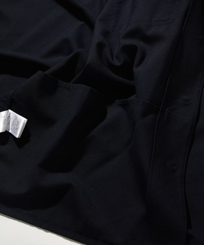 Saxony's open collar wool shirt is soft. warm. and feels good against the skin. The armholes. under the sleeves. and underarms are sewn with three needles for a sturdy finish. With a boxy silhouette. the inside of the body has an A4 size pocket that can store MAGAZINE. The left chest pocket is equipped with a pen holder.