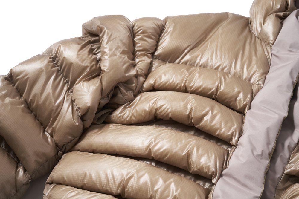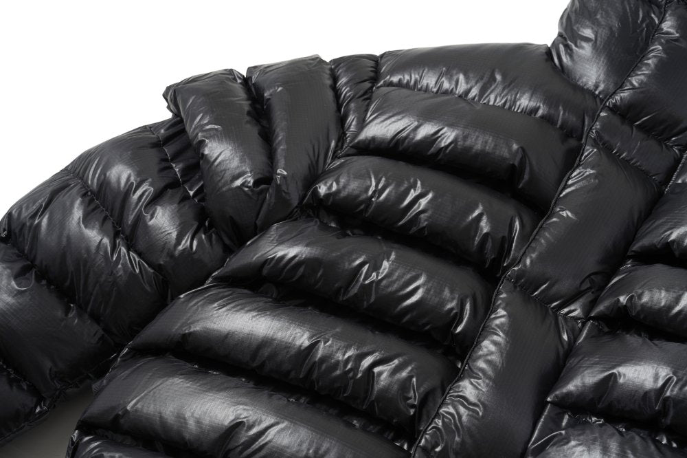 This ultra light down jacket using 50D polyester. lining is 15D nylon. Unique point will be inside of tube water repellent 800FP down. Tube pattern doesn`t crush even you wearing everyday.