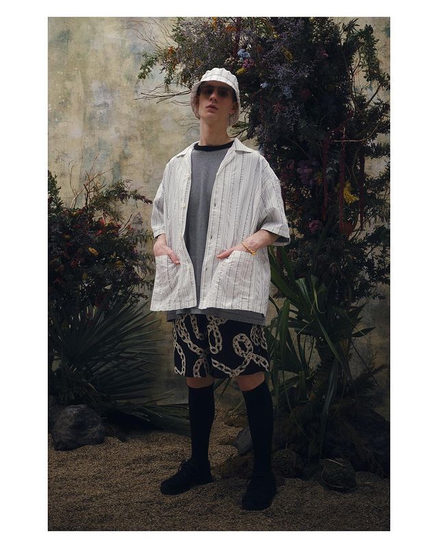 COOTIE PRODUCTIONS STRIPE SUCKER CLOTH OPEN COLLAR S/S SHIRT
