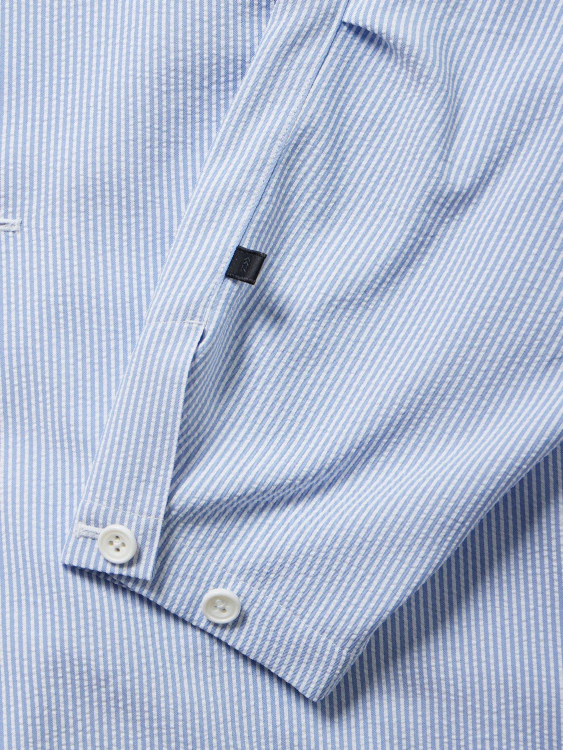 It is characterized by its supple elasticity due to the use of stretch yarn for the weft. and the smooth feel due to the unevenness of the seersucker.