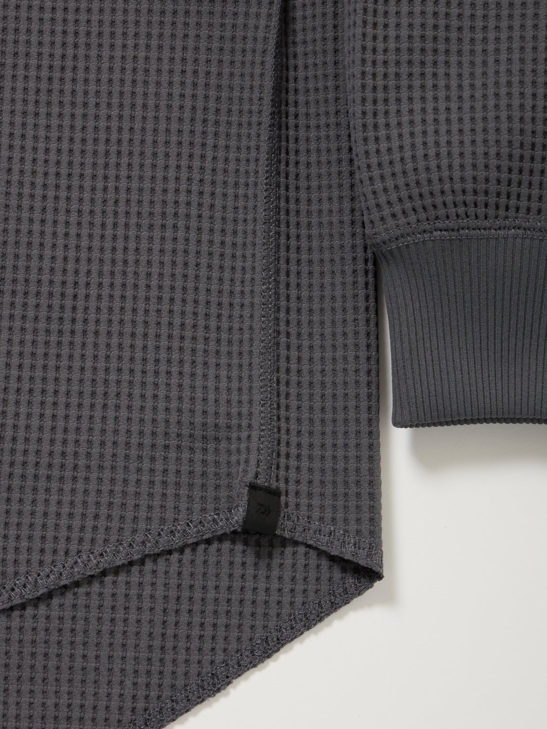 •The waffle material thermal parka features a round cut hem with a blind stitch. taking advantage of its classic characteristics.