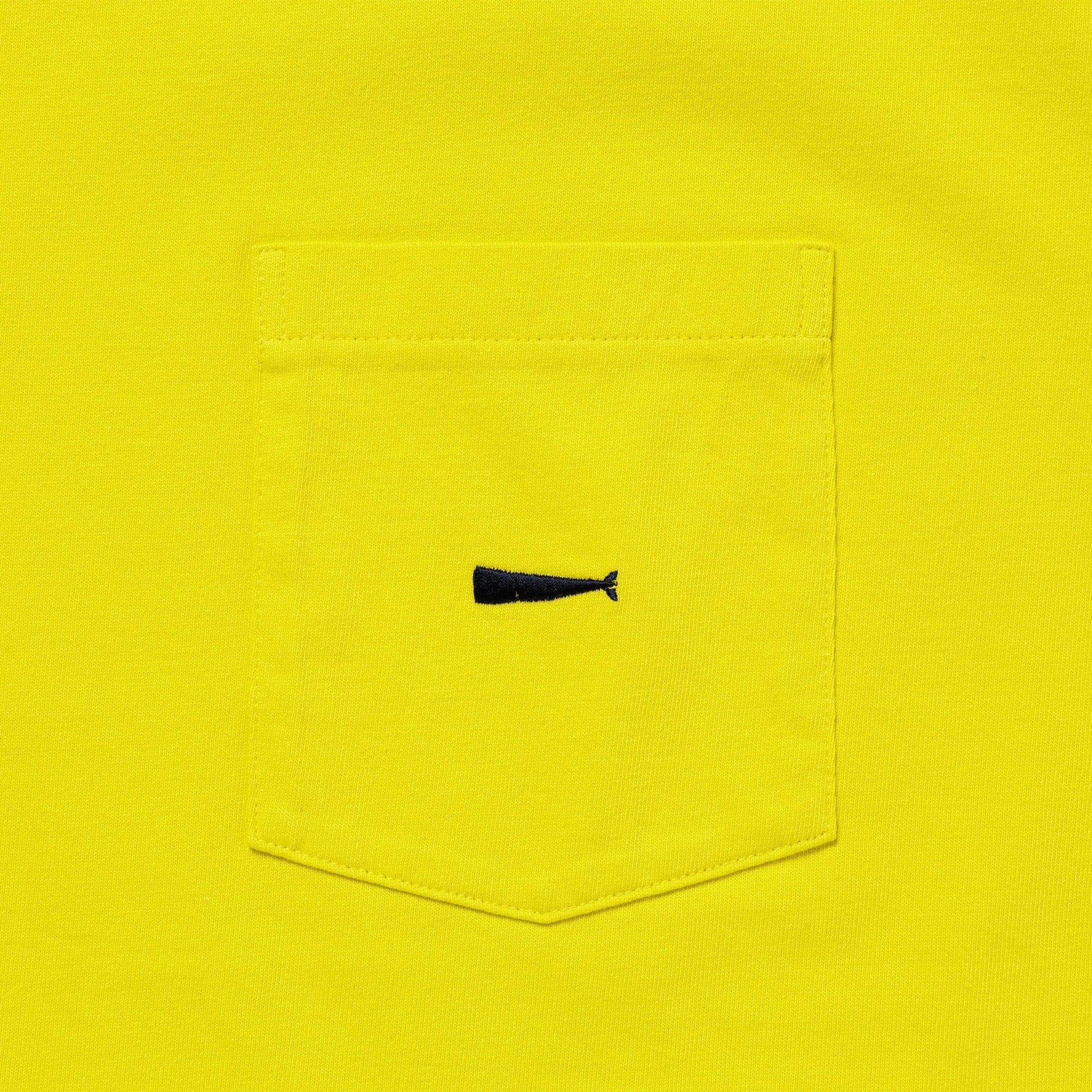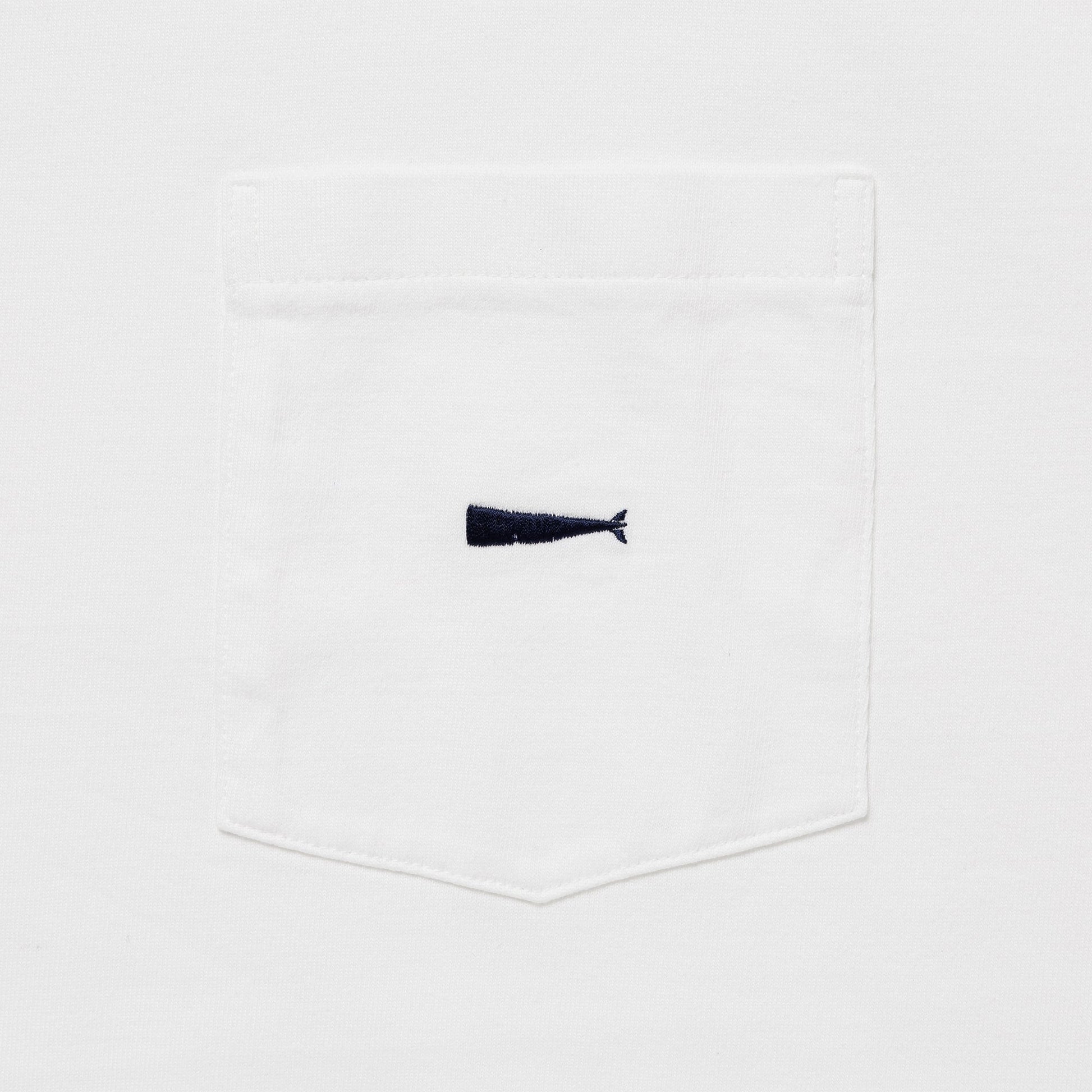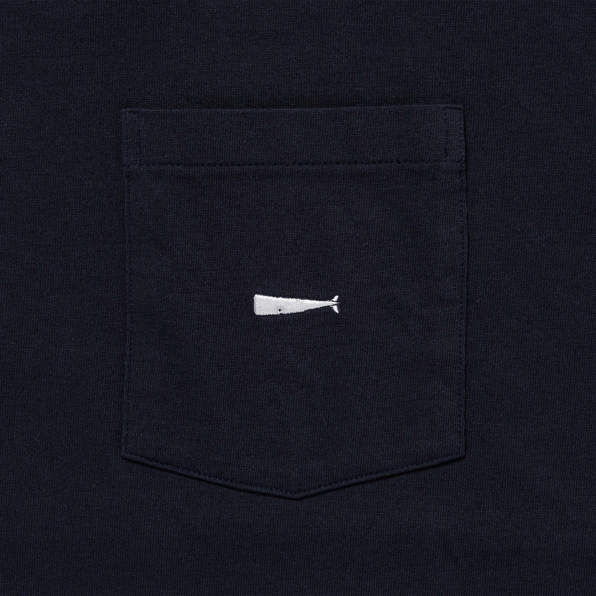 A short-sleeved T-shirt with a pocket made of organic cotton jersey. CACHALOT embroidered logo above the bust pocket. Original tape piping at the neckline seam. CETUS woven name tag with size displayed at the right front hem.