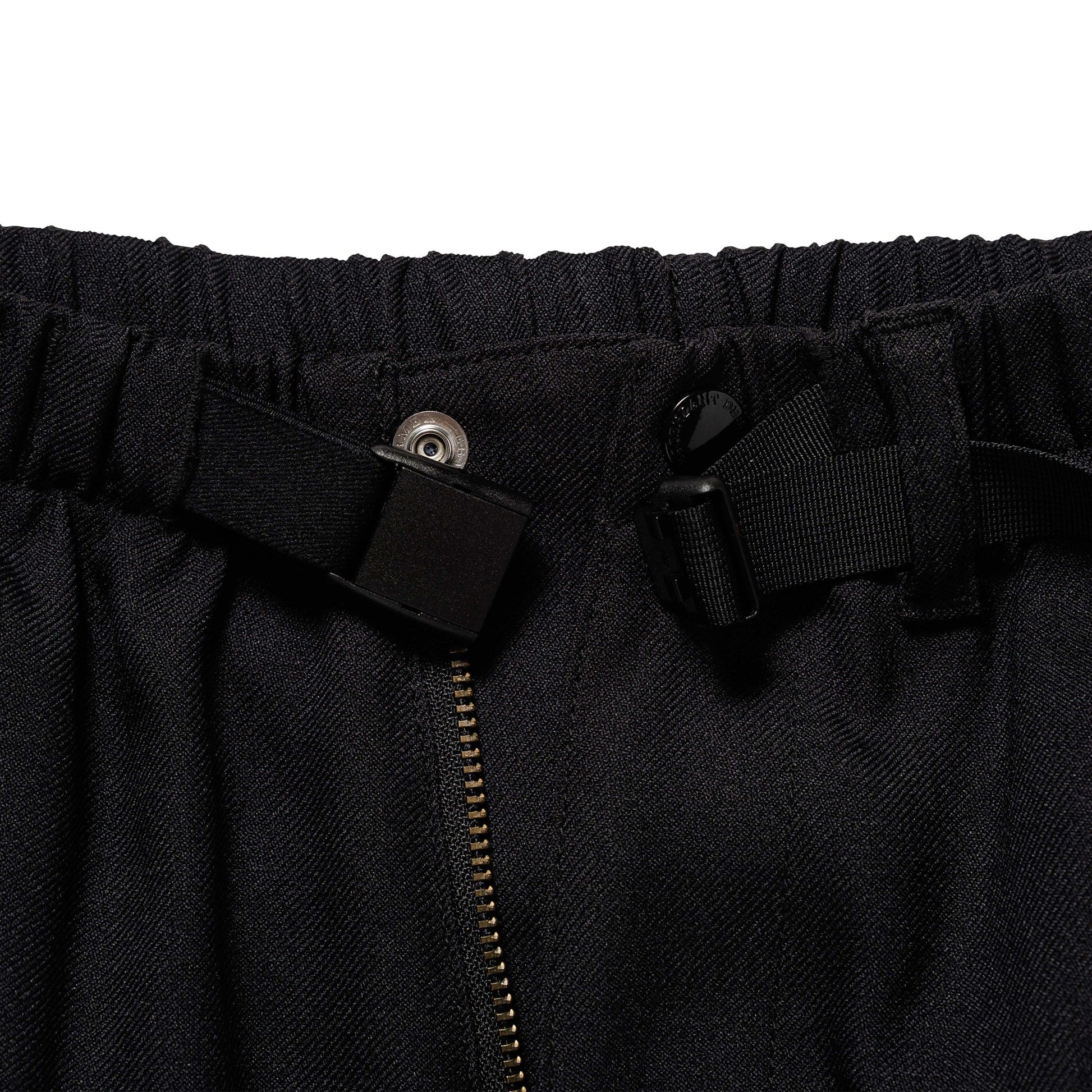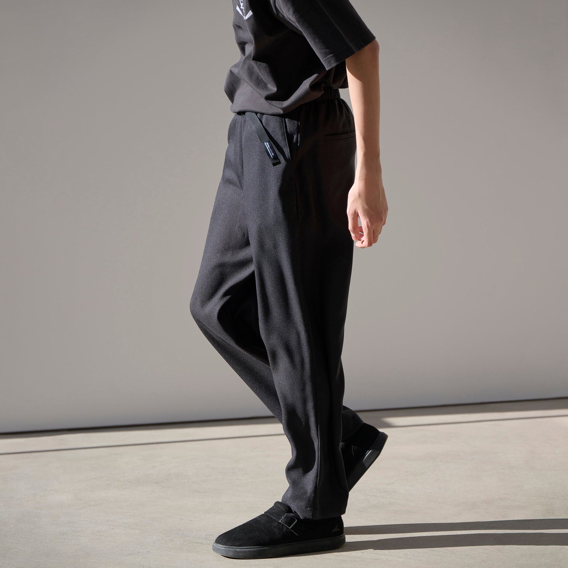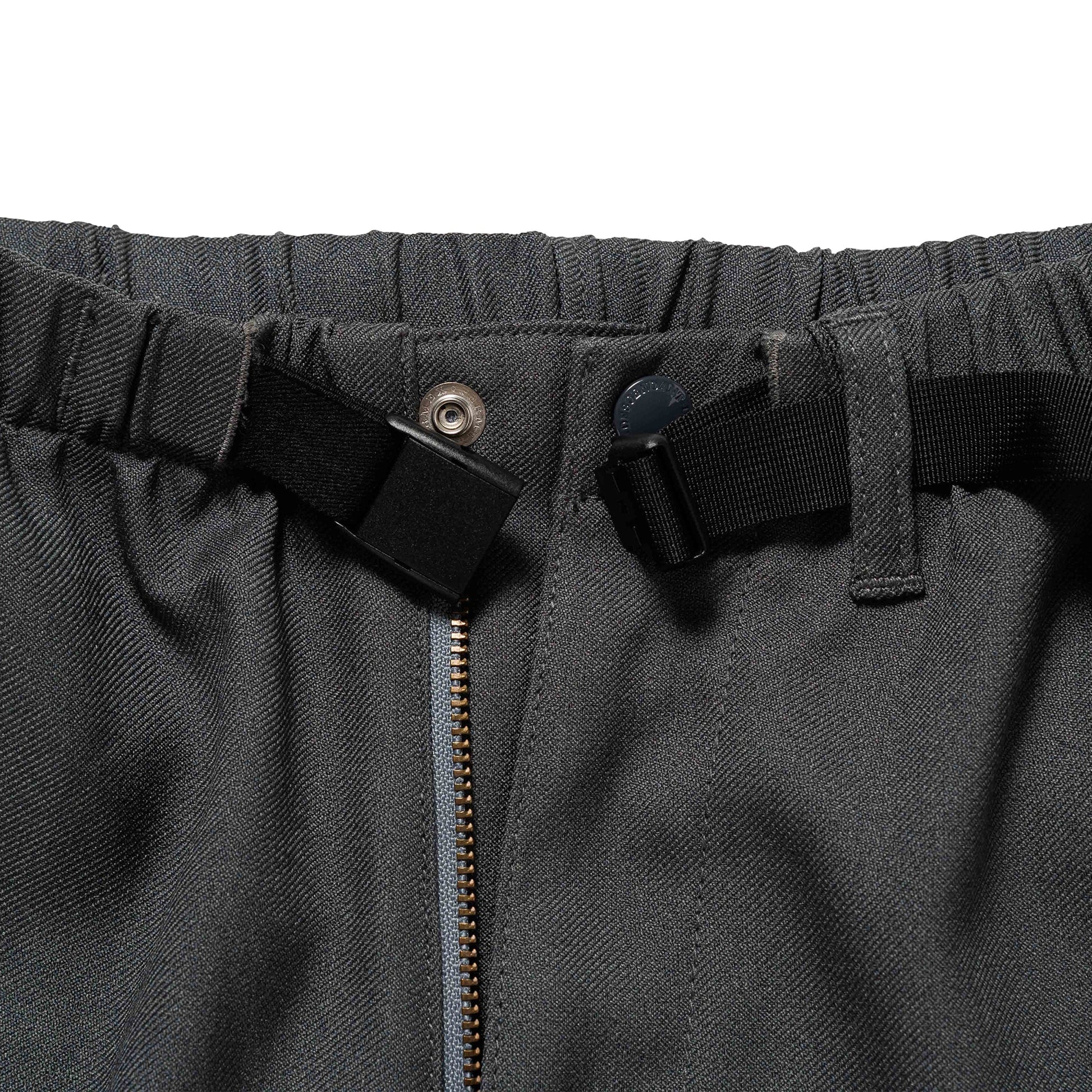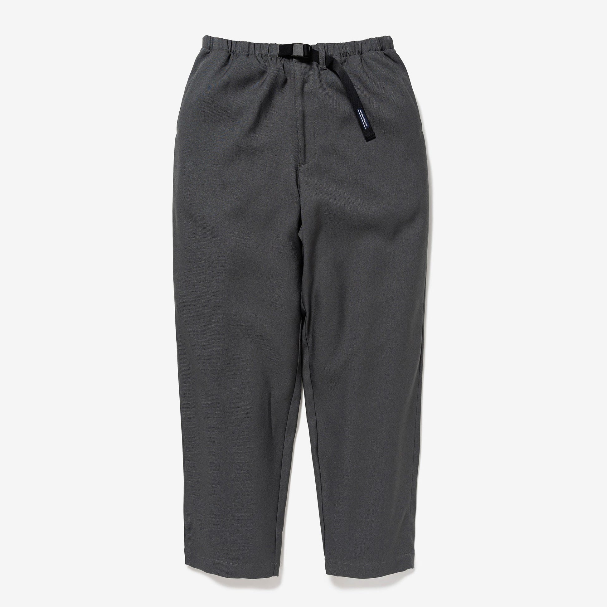 CLASP climbing pants made of polyester twill. A loosely tapered silhouette from the waist to the hem. diagonal side pockets and hip pockets with a single welt. SPYHOP woven name on the back. and a built-in adjuster belt with HORIZON woven name on the waistband.