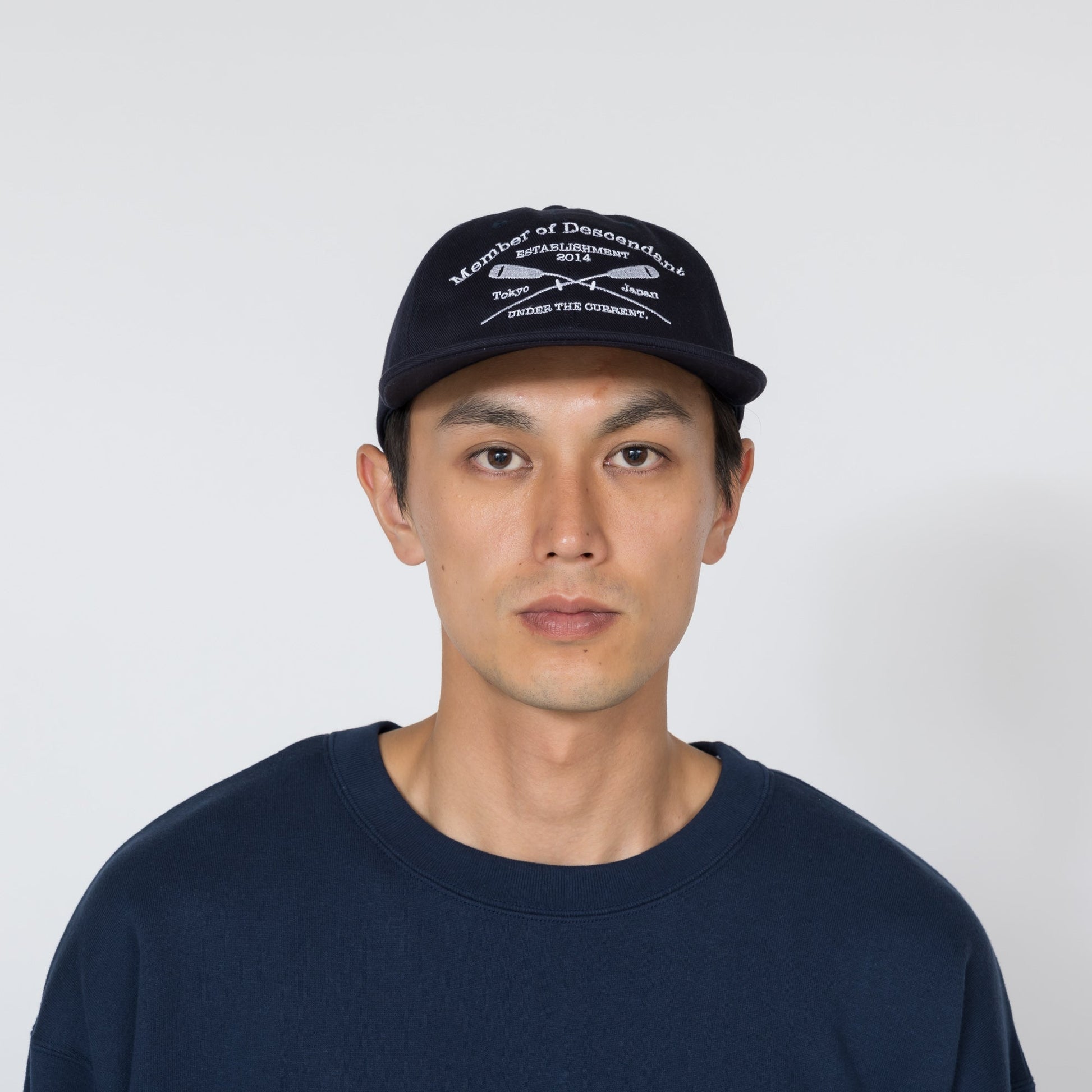 Basic cotton twill 6-panel cap. CROSS PADDLE graphic on the front and embroidered box logo on the back. With buckle and adjuster belt.