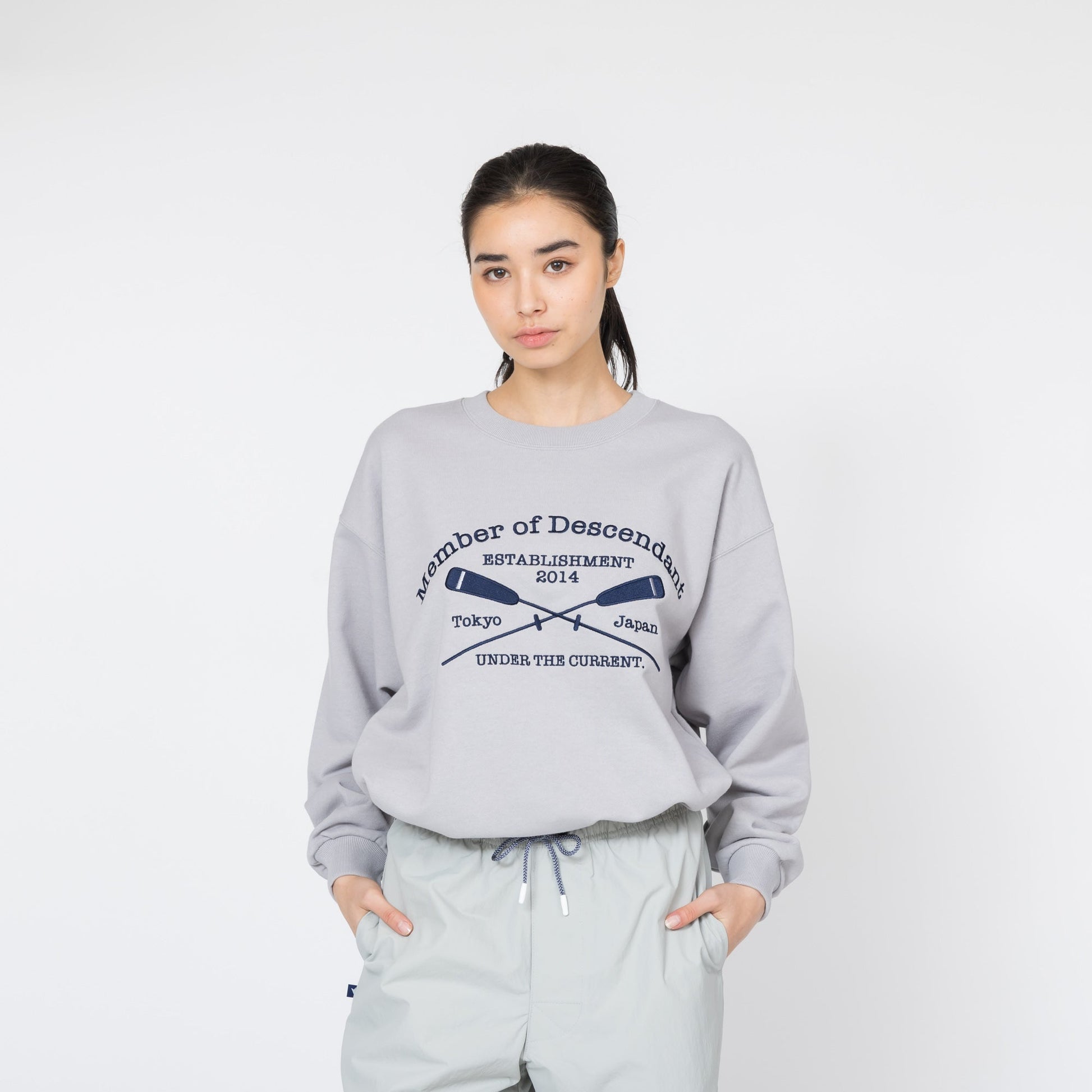 Sweatshirt with set-in sleeves in organic cotton-lined fabric from Turkey. Loose-fitting. wide silhouette. ribbed crew neck. embroidered CROSS PADDLE graphic on the front as proof of membership. Available in black. grey and navy.