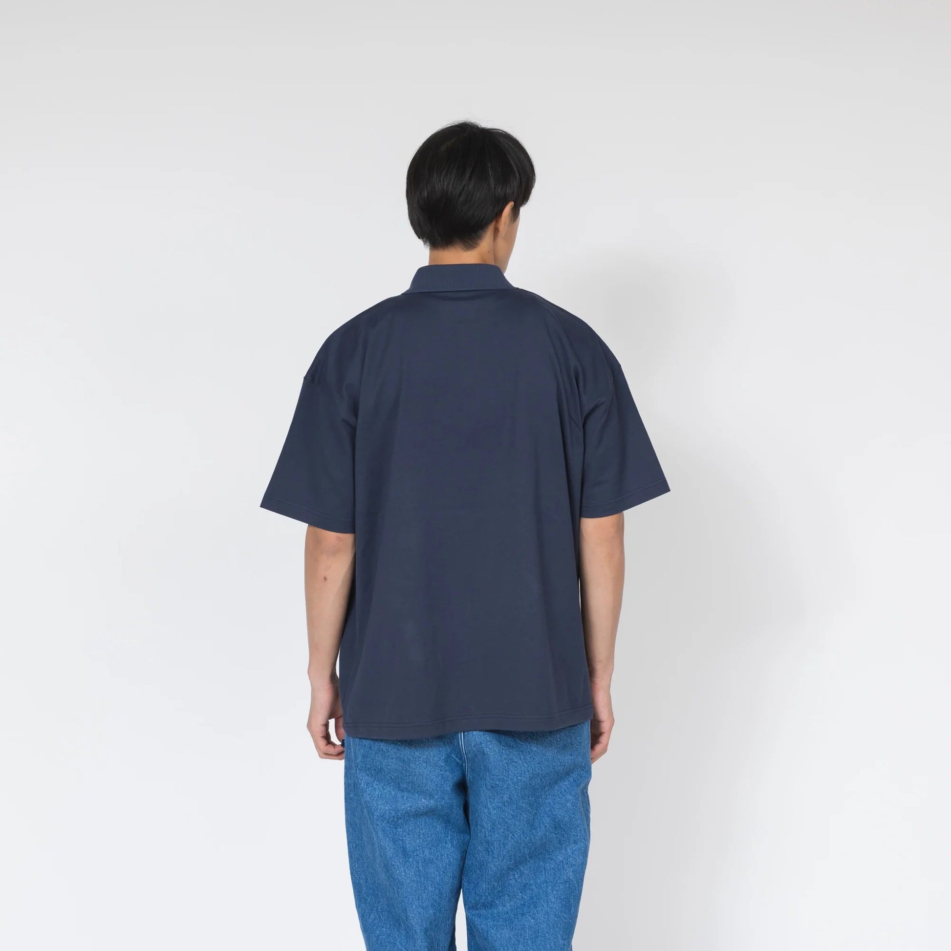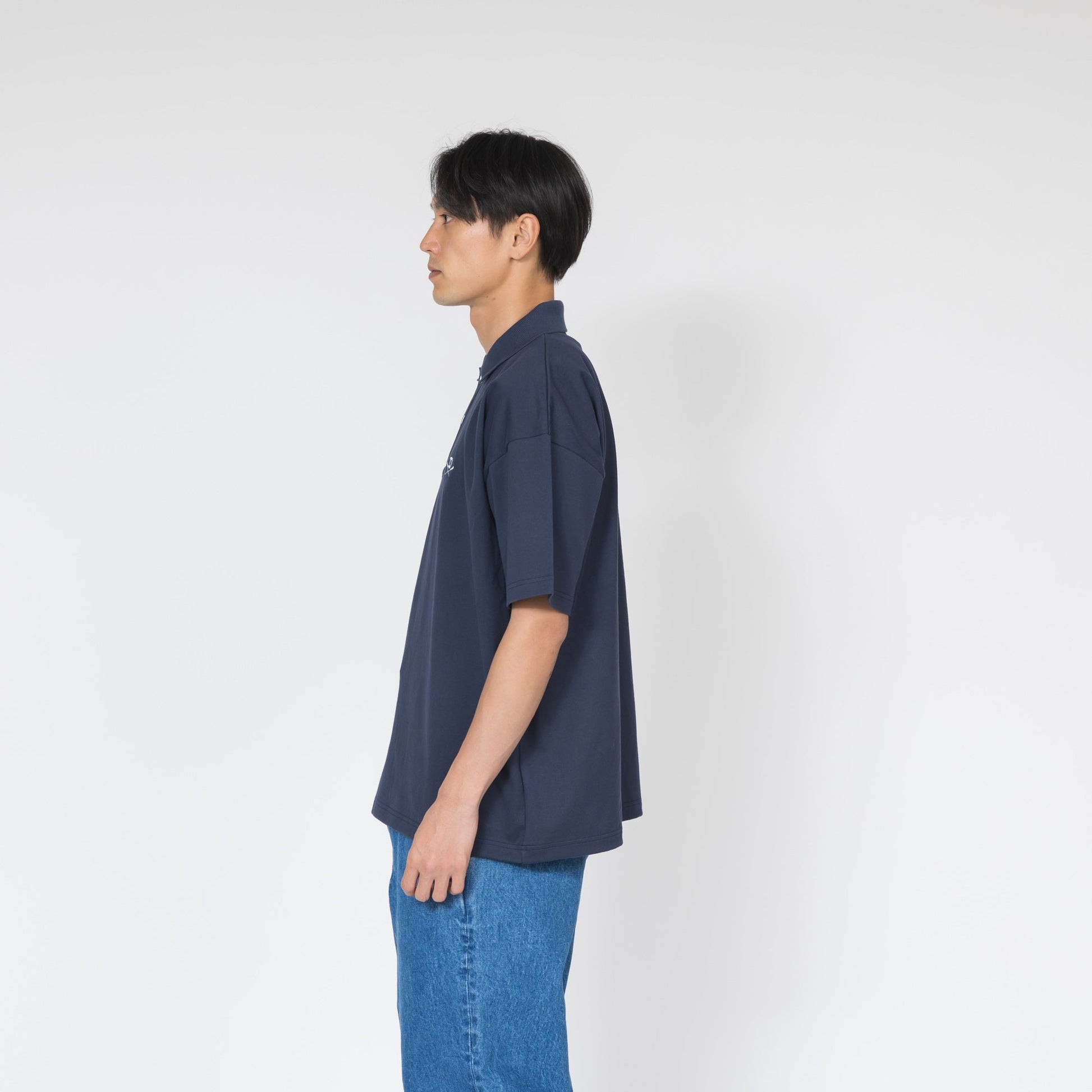 Polo shirt made of organic cotton jersey. Loose-fitting. wide silhouette. two-button half-placket with SHIP logo taping at the polo collar seam. PADDLE embroidered on the left chest. Available in navy and white.
