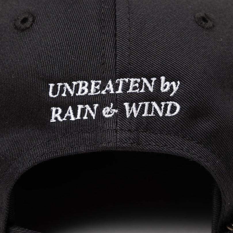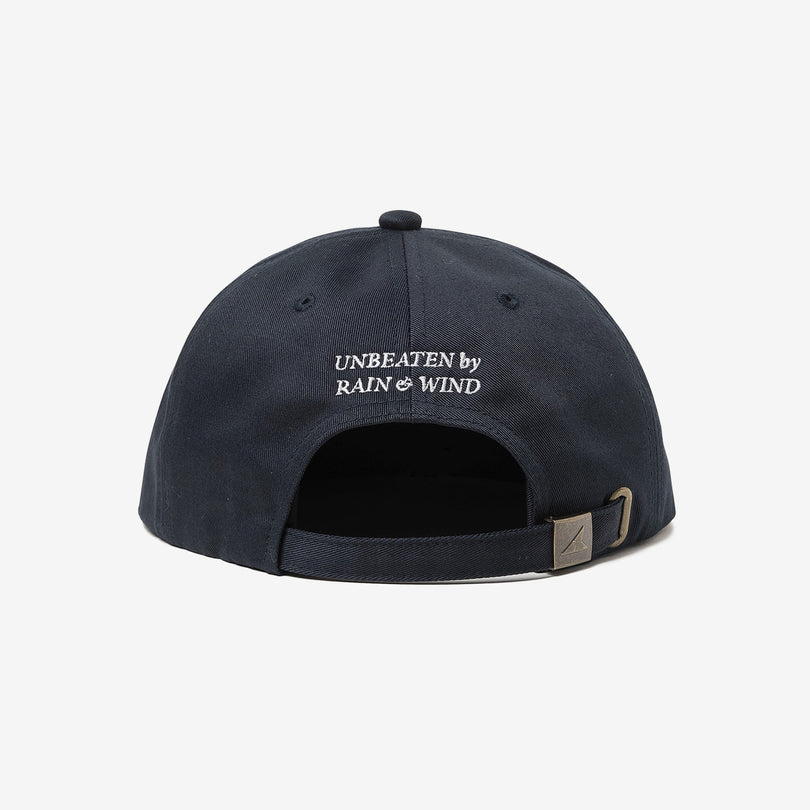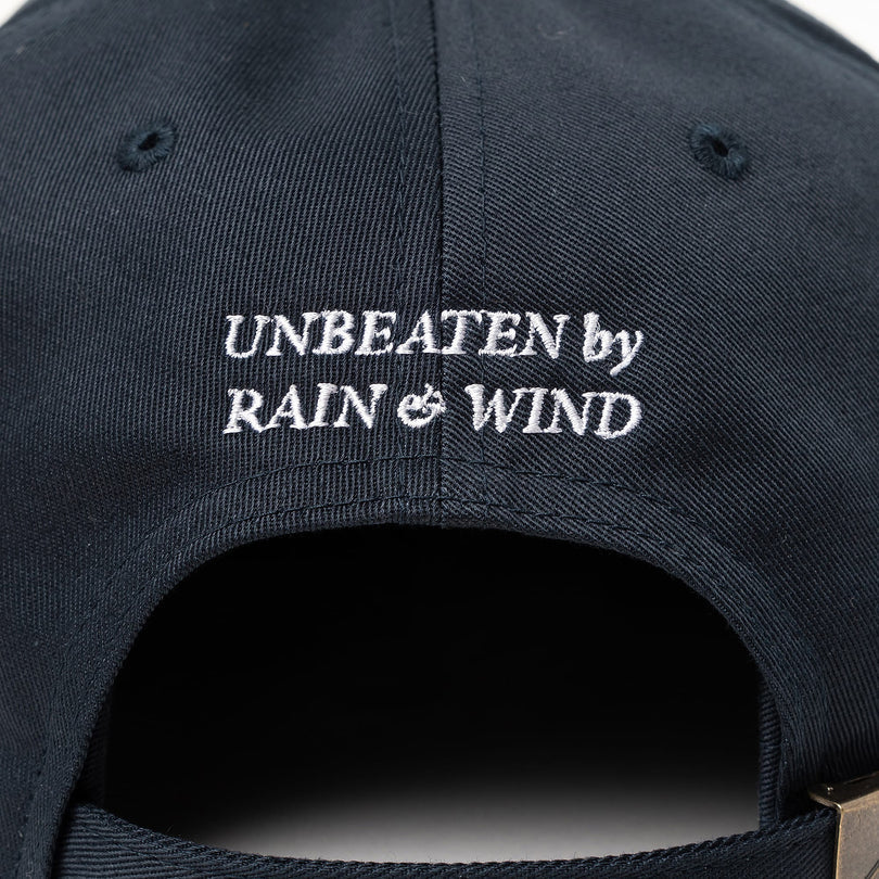 6-panel cap in cotton twill with HORIZON on the front and embroidered slogan 'Out of the rain. out of the wind' on the back. With buckle and adjuster belt.