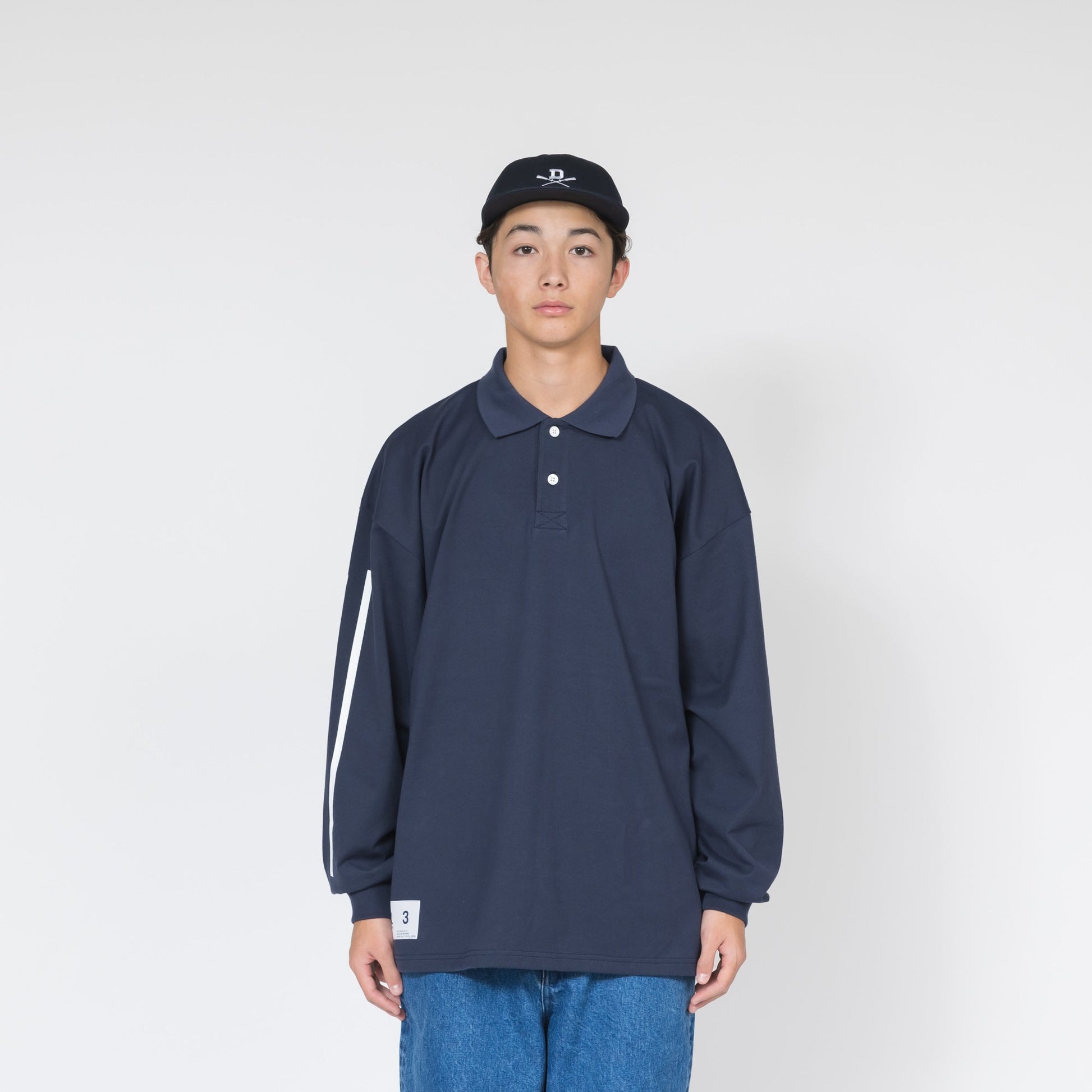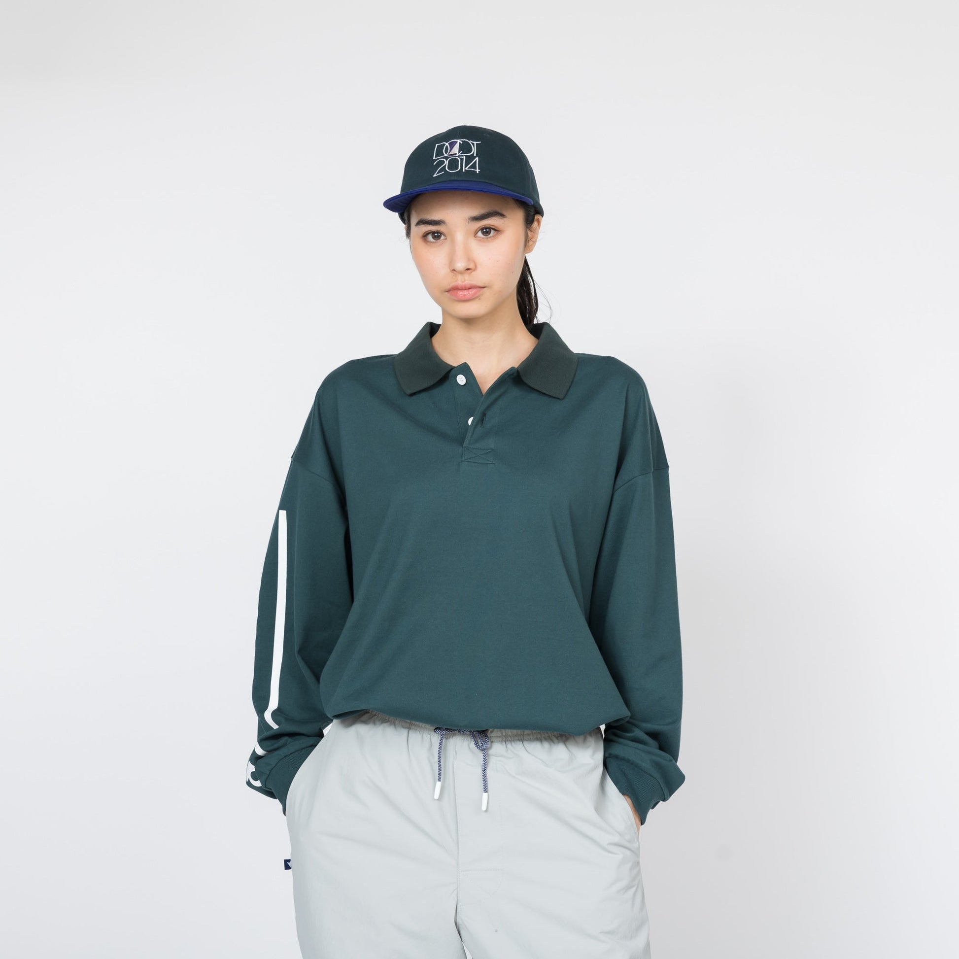 Polo shirt in organic cotton jersey. Loose-fitting. wide silhouette. two-button half-placket and ribbed polo collar. HORIZONTAL printed logo on the back and right sleeve. Slits at the sides of the hem.