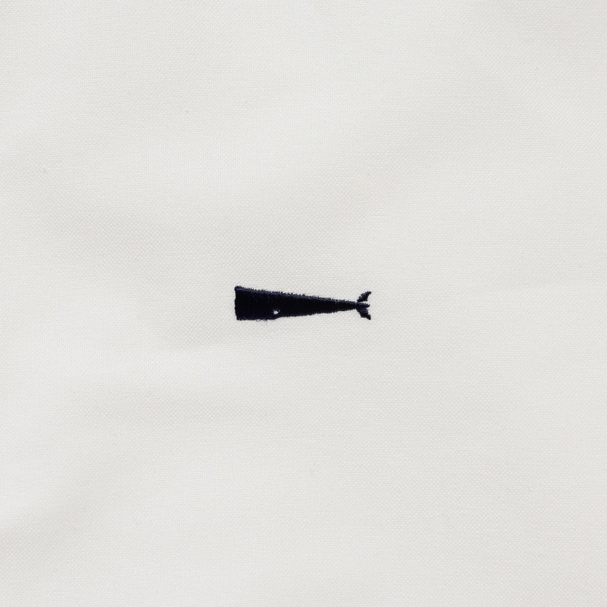 This button-down shirt is crafted from cotton oxford. It features a relaxed silhouette. a B.D. collar. a center box pleat with a loop. and a sword-shaped boro design with gauntlet button closure. It also features an embroidered CACHALOT logo on the left chest and a woven SPYHOP label at the front hem.