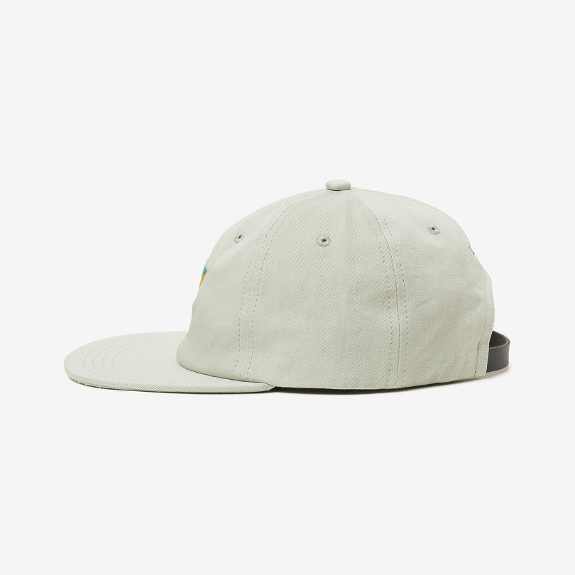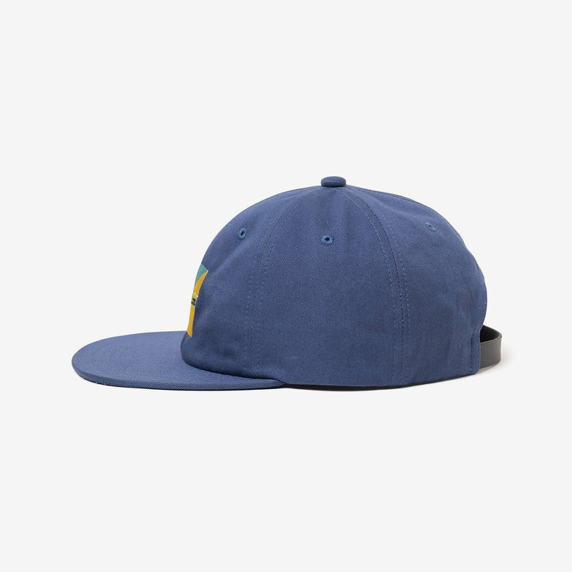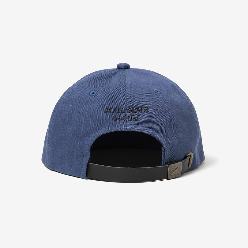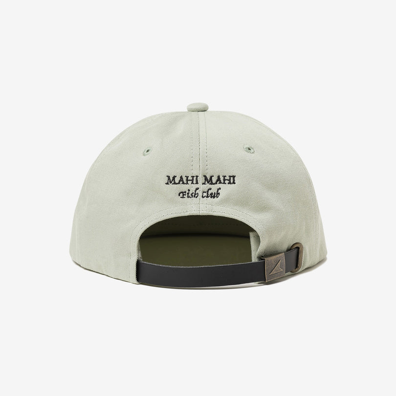 6-panel cap in green and navy cotton twill. MAHI MAHI on front and fictional Fish Club embroidered logo on back. With buckle and adjuster belt.