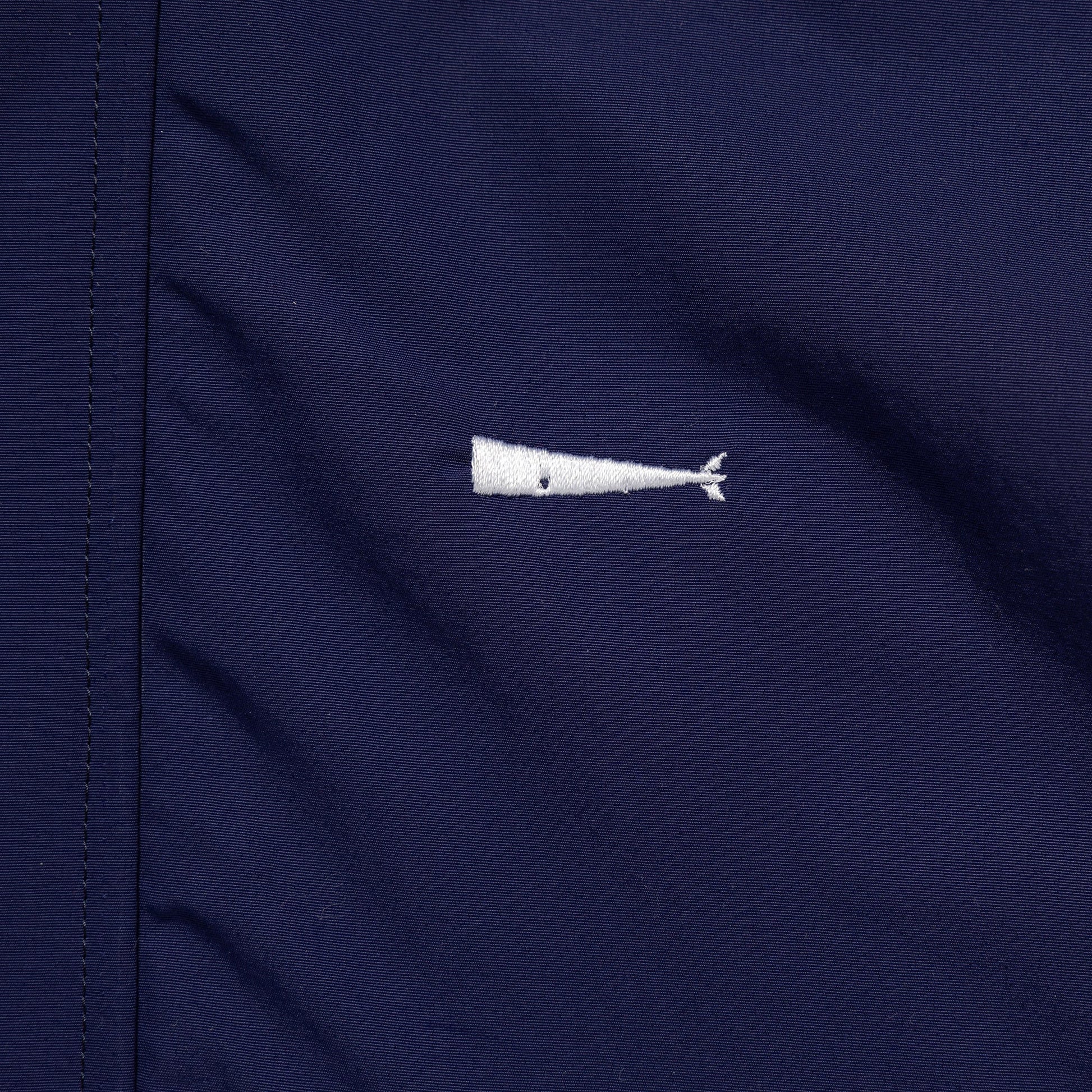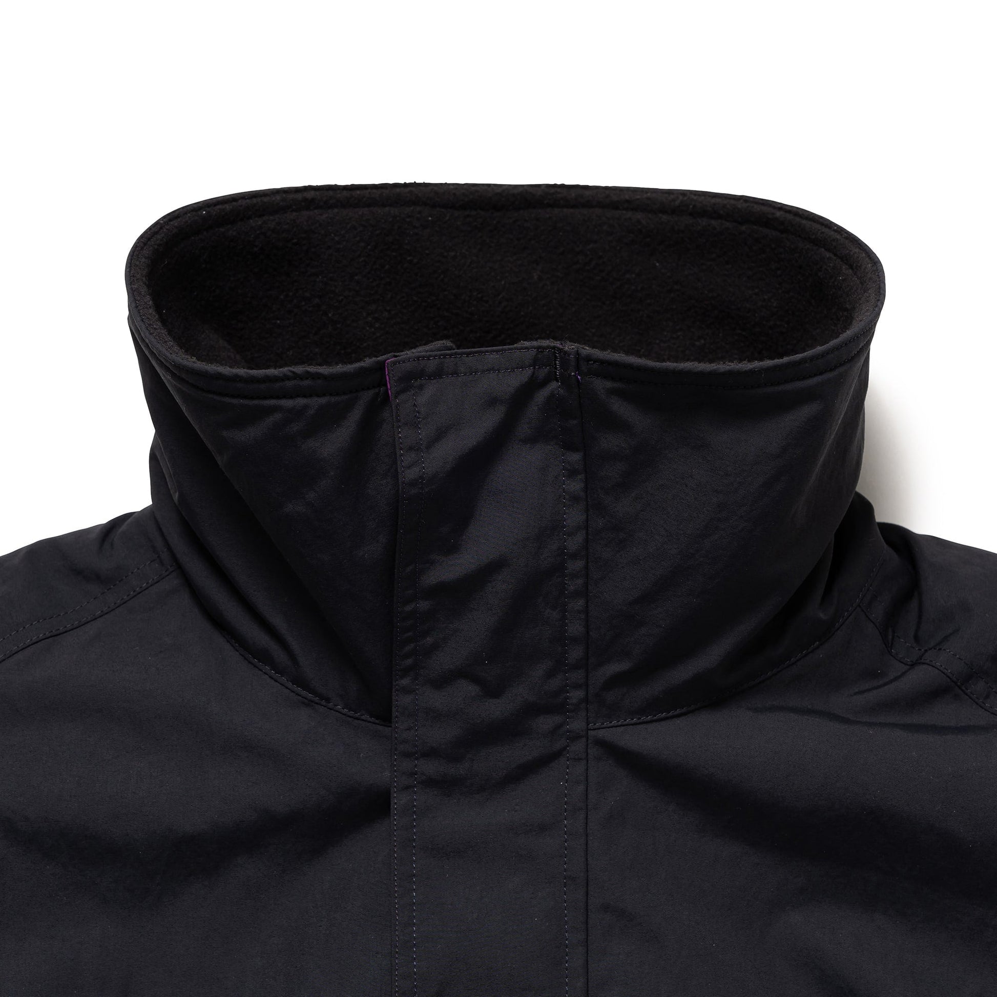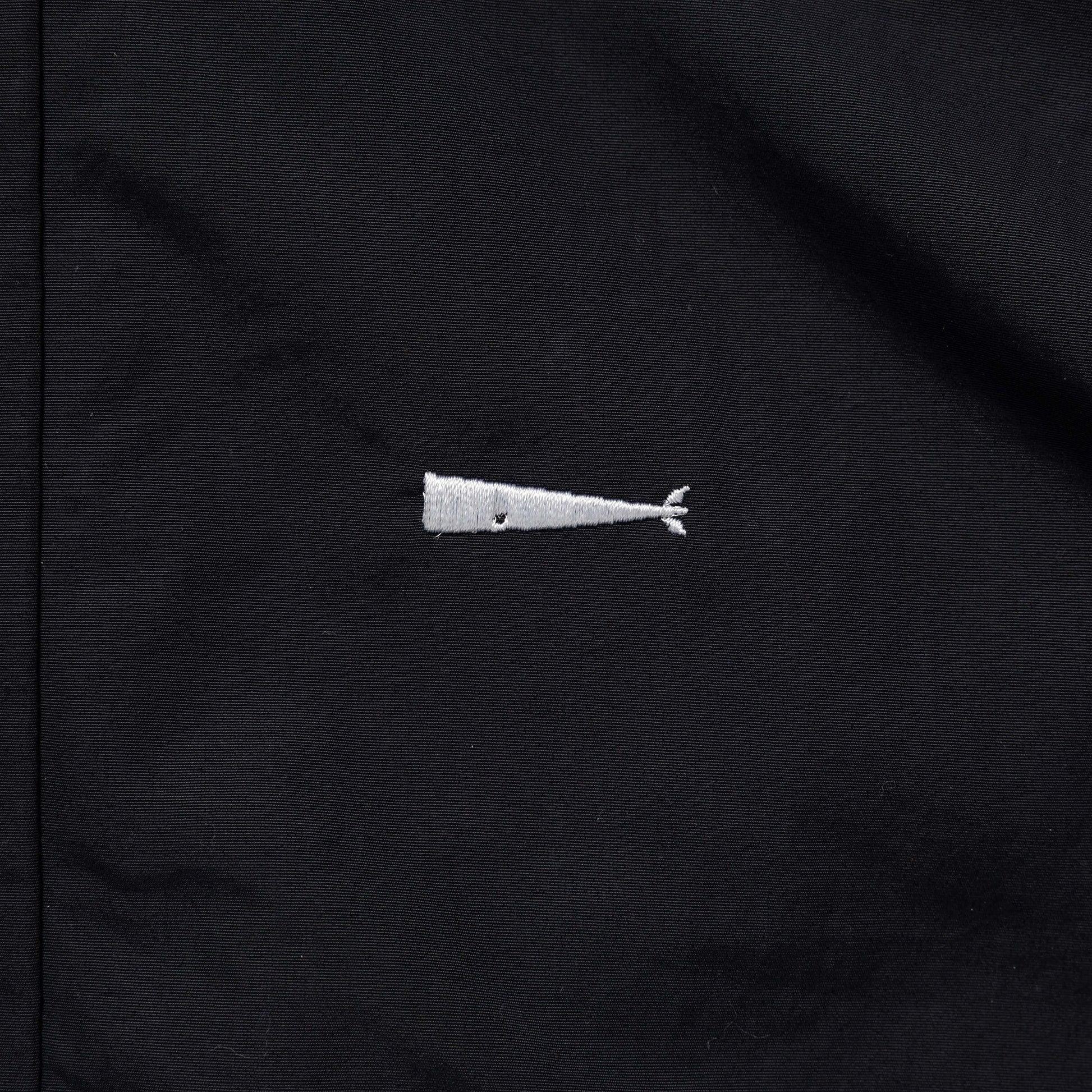 A nylon jacket with raglan sleeves. made of color-coordinated nylon taffeta and lined with fleece. It has hand warmers with gussets on both sides of the front. CACHALOT embroidery on the left chest. and a HORIZON logo on the back of the collar.