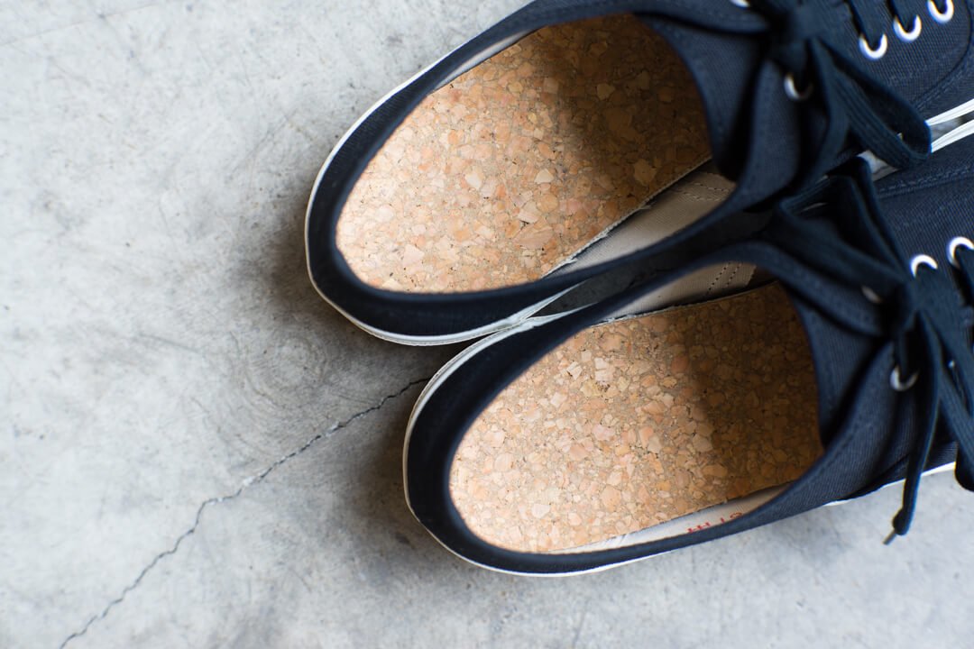 The DOEK SLIP-ON is a slip-on type that is easy to put on and take off. The sole part has the same specifications as the inner-feather type model 'OXFORD'. with moderate volume and elasticity. The canvas mainly used is a coarse one woven on Kurume Kasuri looms. The raw fabric is not dyed. so the original texture of the fabric can be fully appreciated without the fabric becoming thin. The footbed is made of cork. a naturally breathable material. The Vulcanisation process. which is painstakingly handcrafted. produces a daily necessity in terms of beauty. wearability and durability for today's lifestyle.