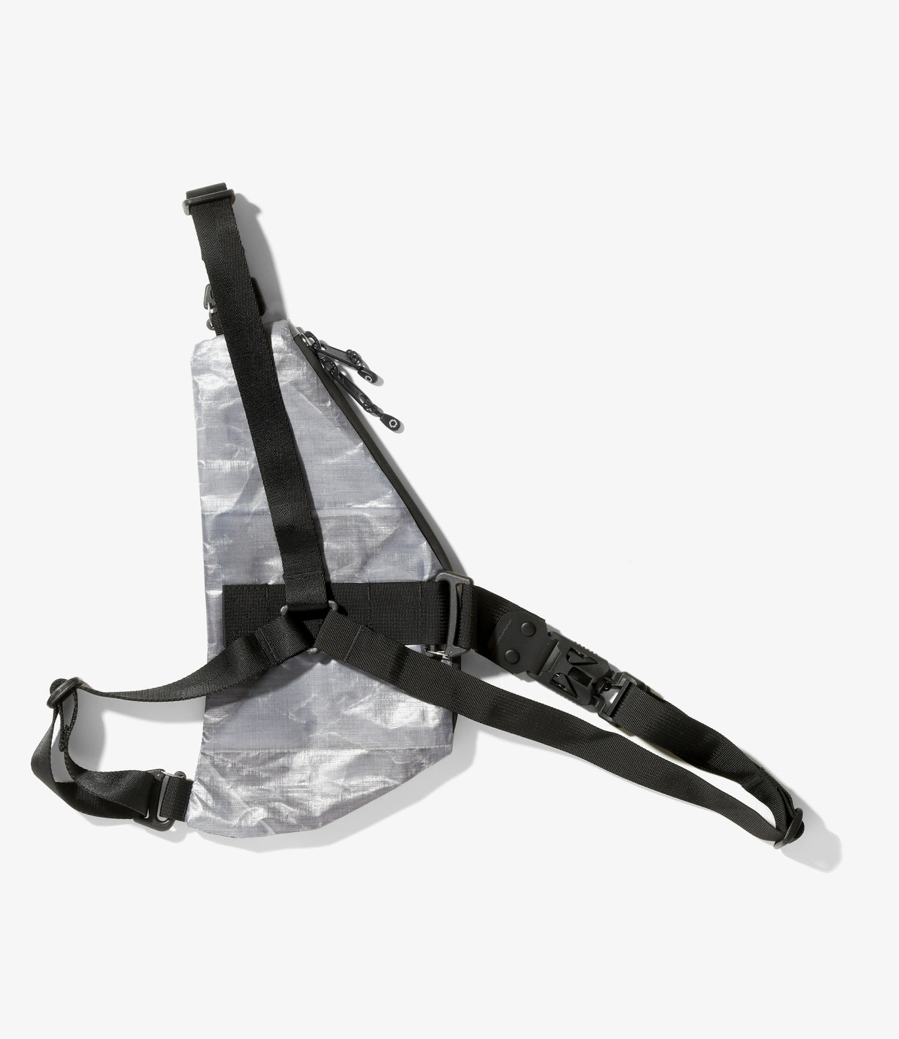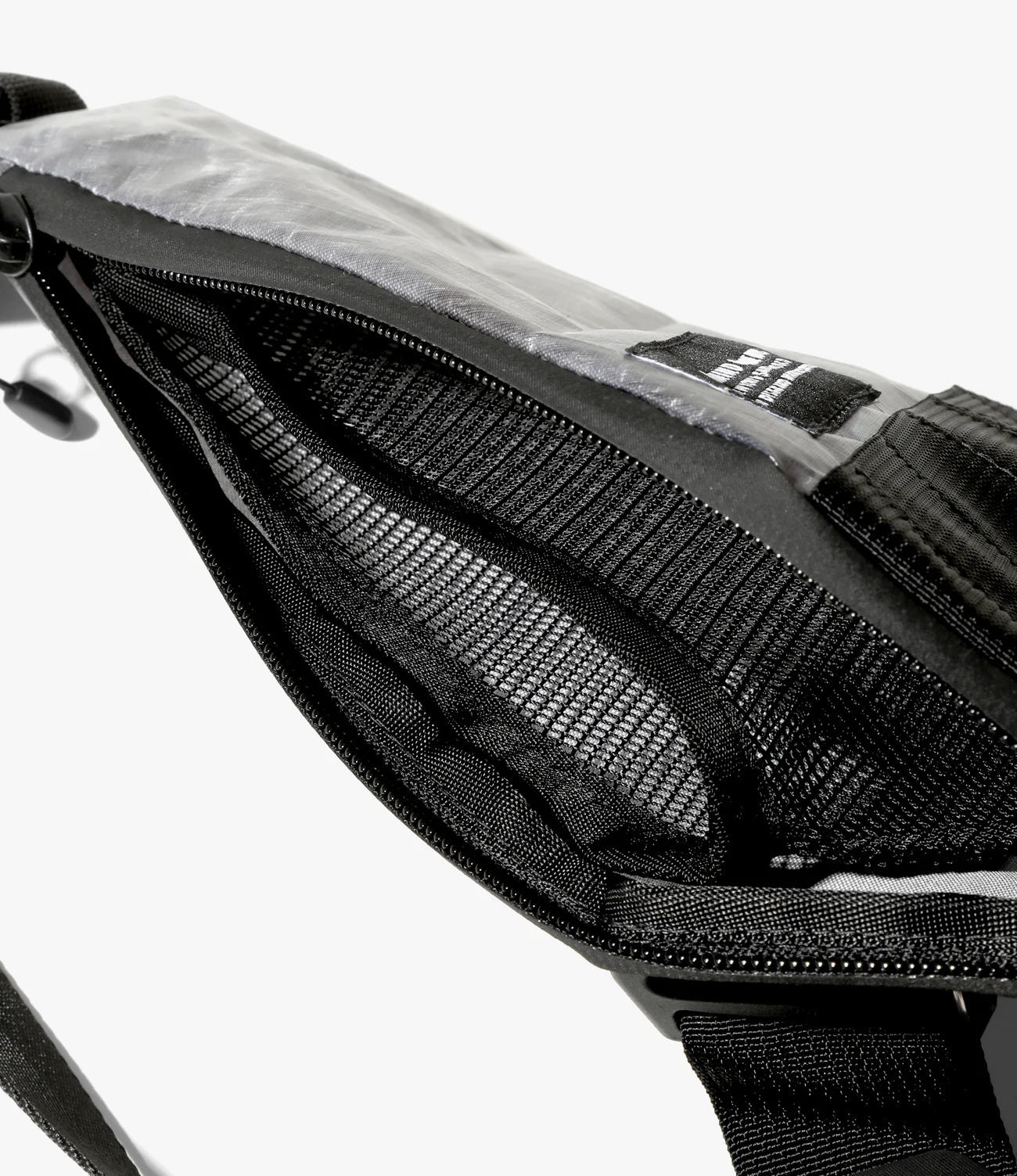 "UNIT VERTICAL POUCH" is a uniquely shaped mini bag that can hold daily portable items in close contact with the body. It is a highly fashionable design that can be layered inside a jacket or other garments. The belt comes with a buckle with a built-in magnet for easy attachment and detachment.