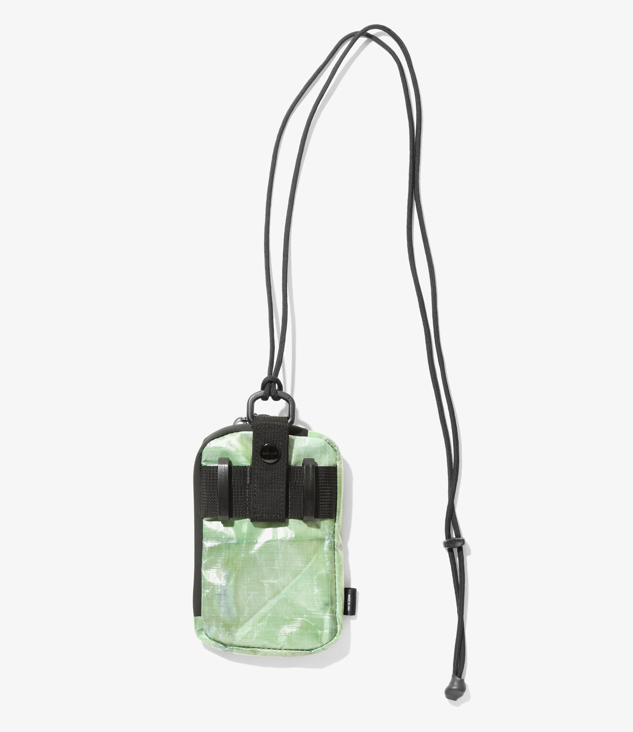 The "UNIT ZIPPER POUCH" is the most compact size in this collection. It is a convenient item for light outings. The length of the cord around the neck can be adjusted. and the cord and D-ring can be detached with a snap button. It can also be attached to a belt or other bag using the clip part.