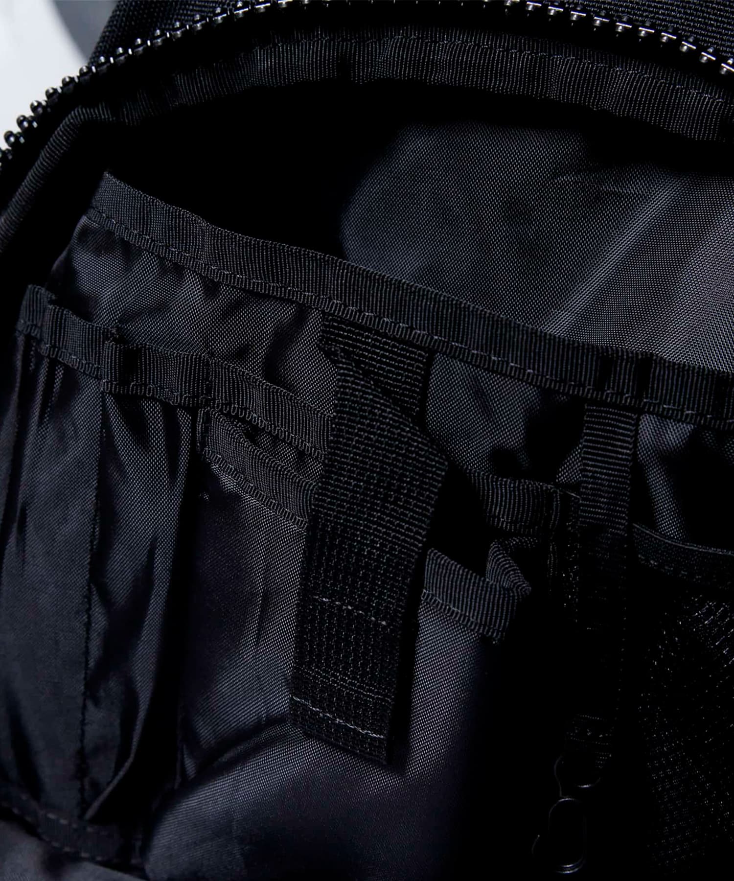 The shoulder straps are equipped with the MOUNTING T SYSTEM that can be used to attach a compatible saccoch or pouch.