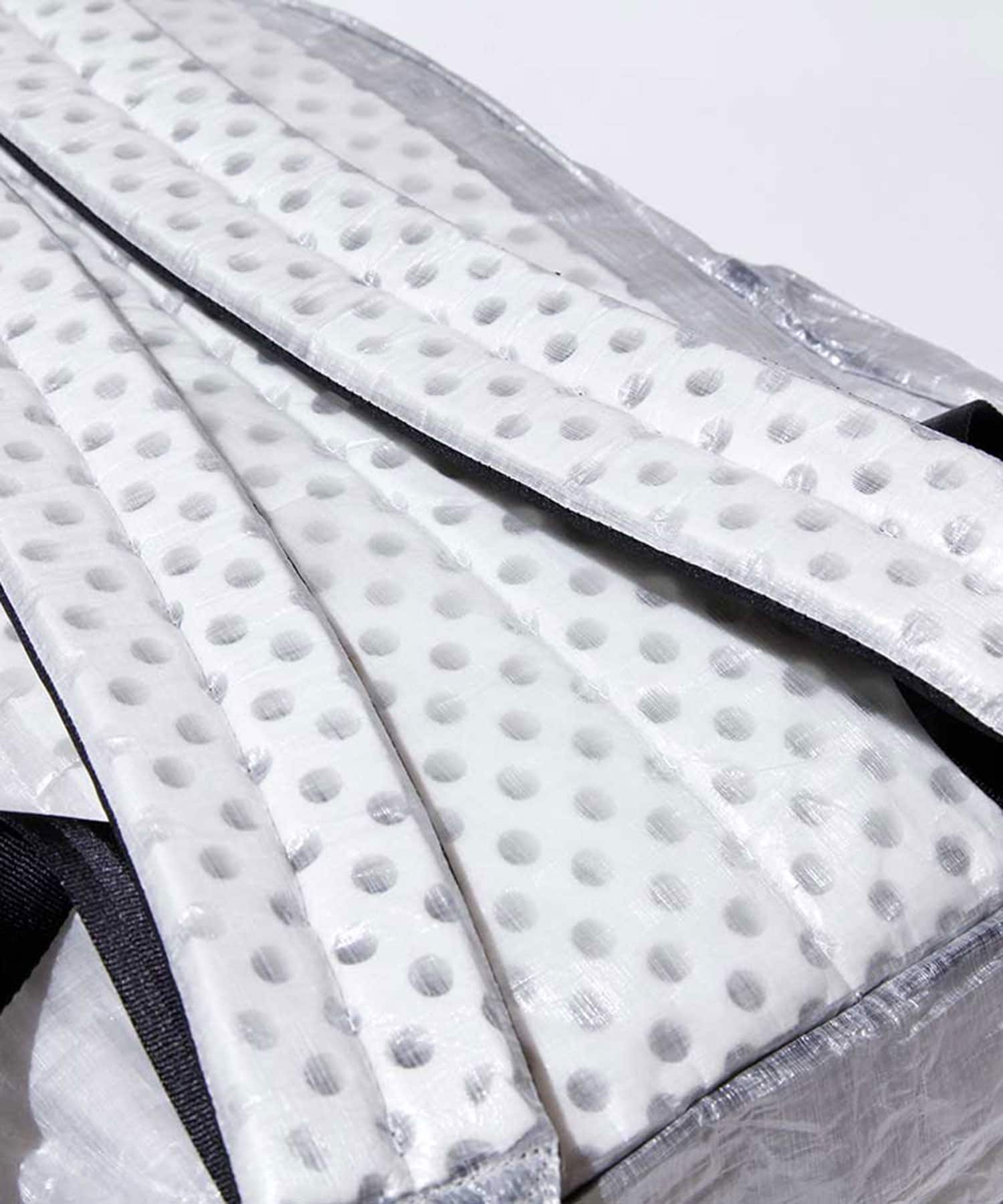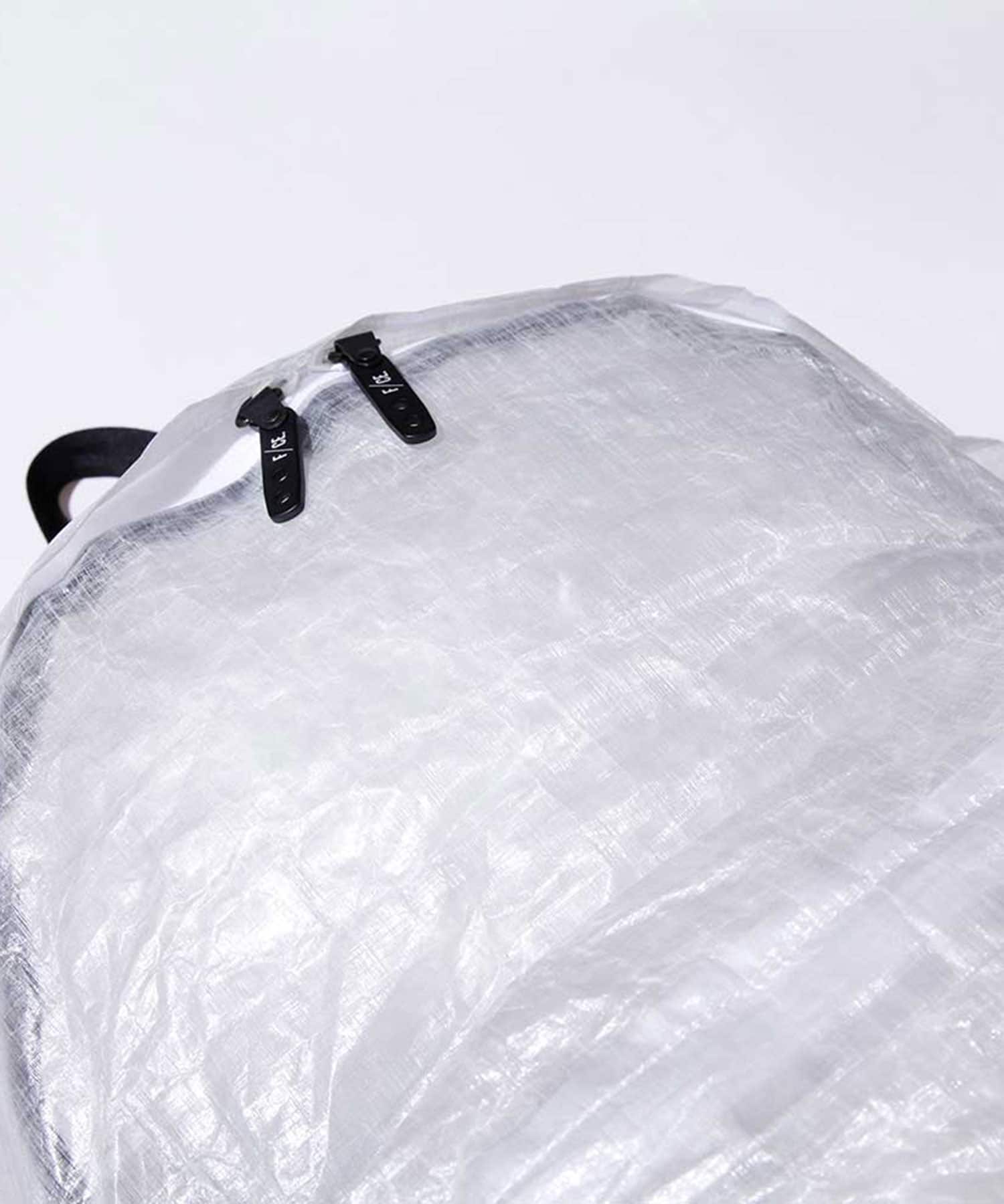 A film-like fabric laminated with polyethylene fiber dyneema laminated with UV resin ( Cuben Fiber). Very lightweight and waterproof.