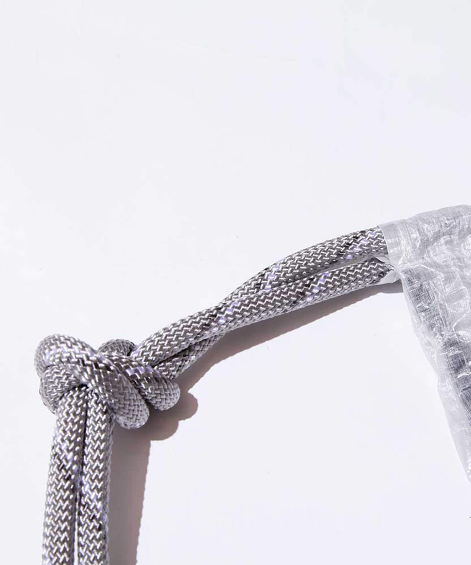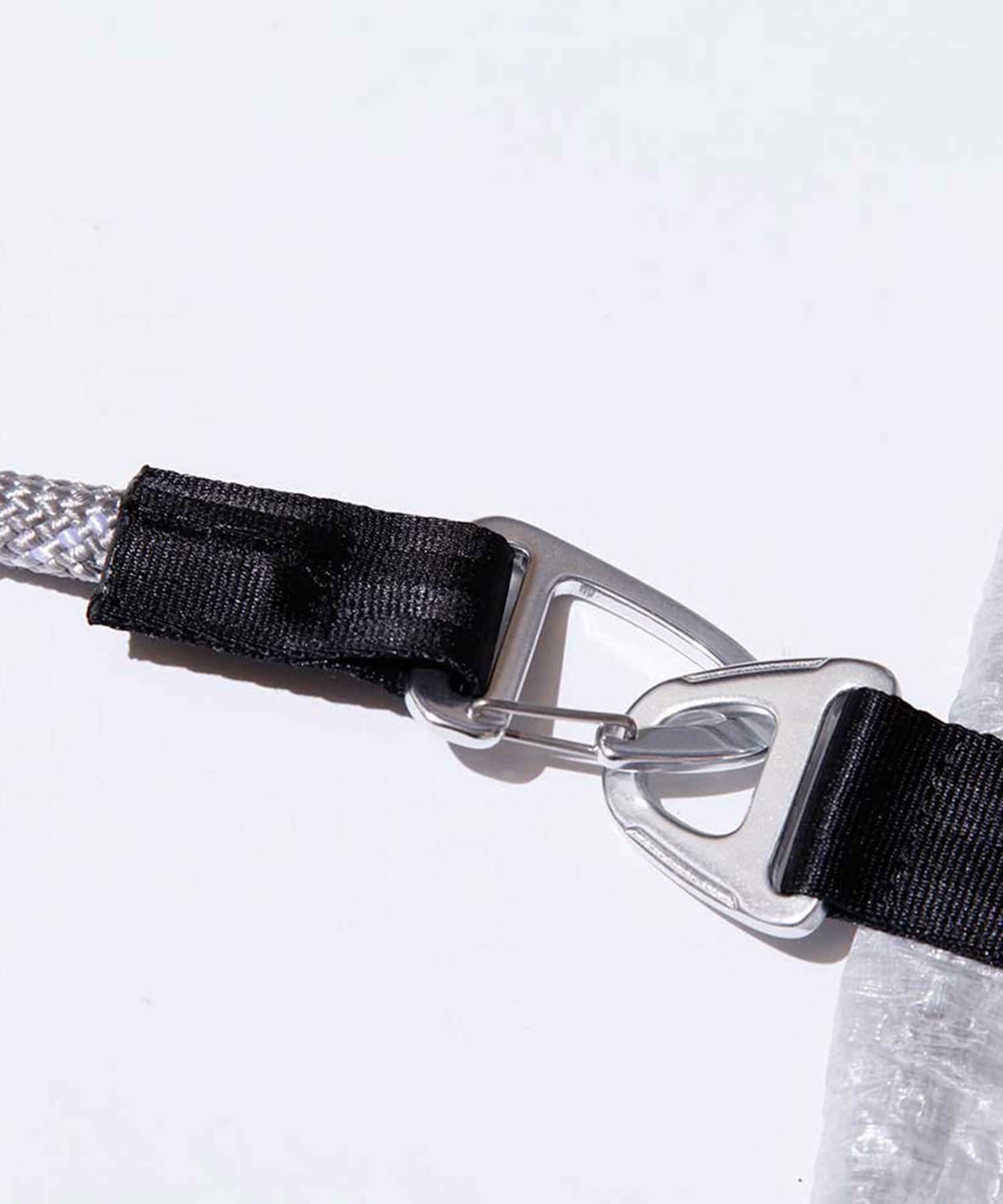A film-like fabric laminated with polyethylene fiber dyneema laminated with UV resin ( Cuben Fiber). Very lightweight and waterproof.