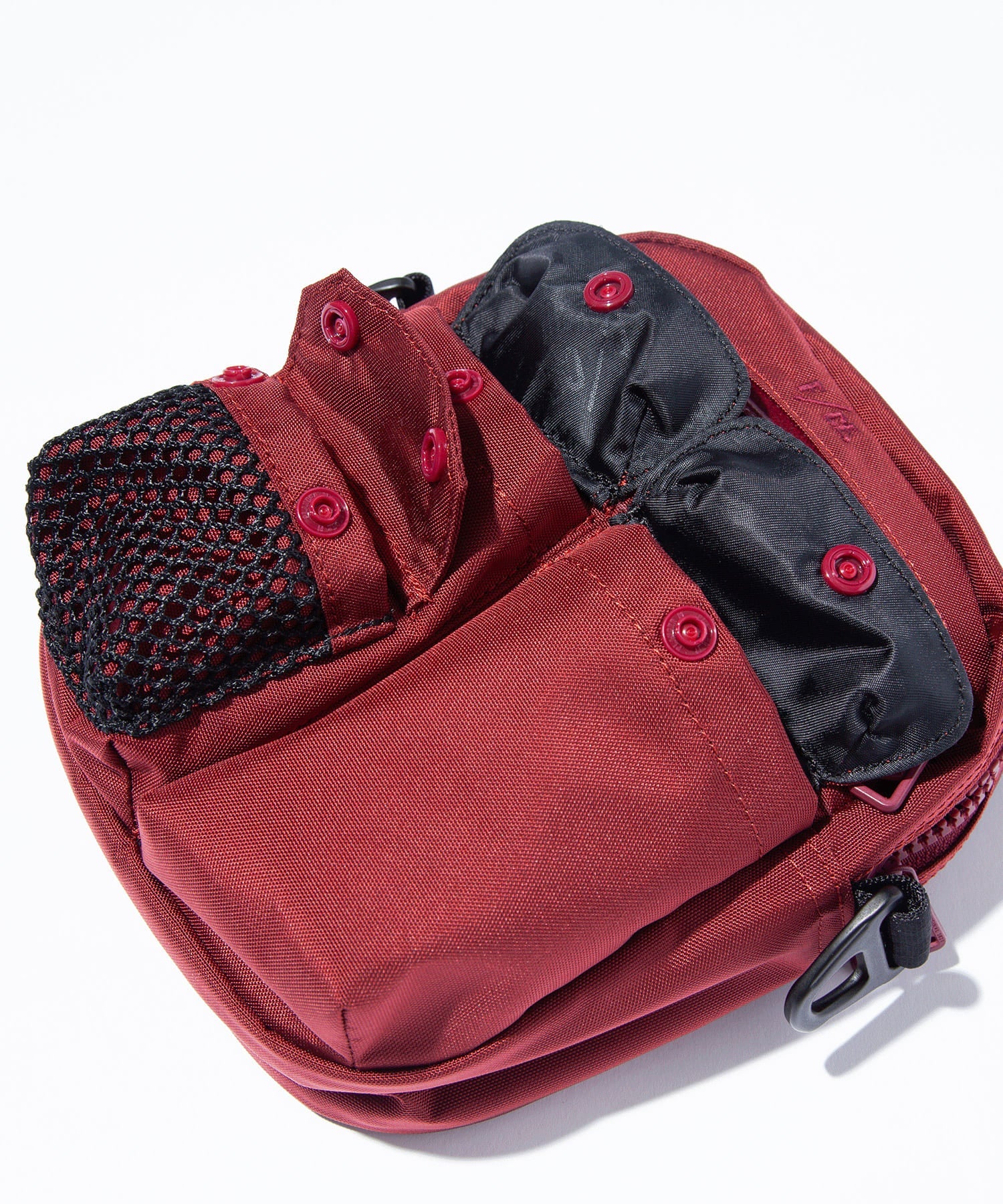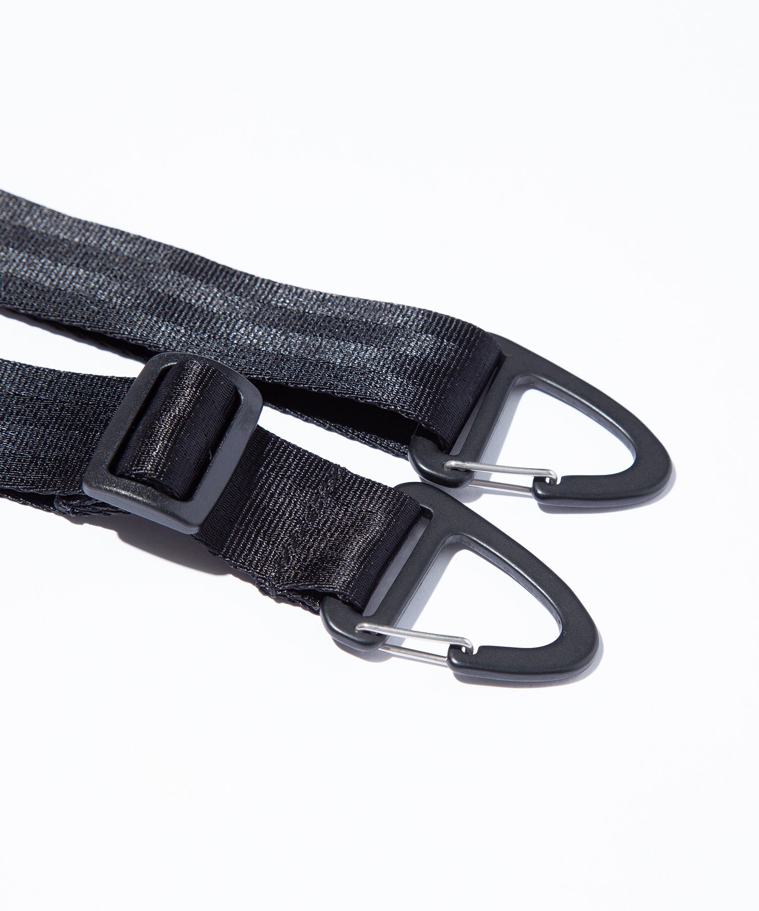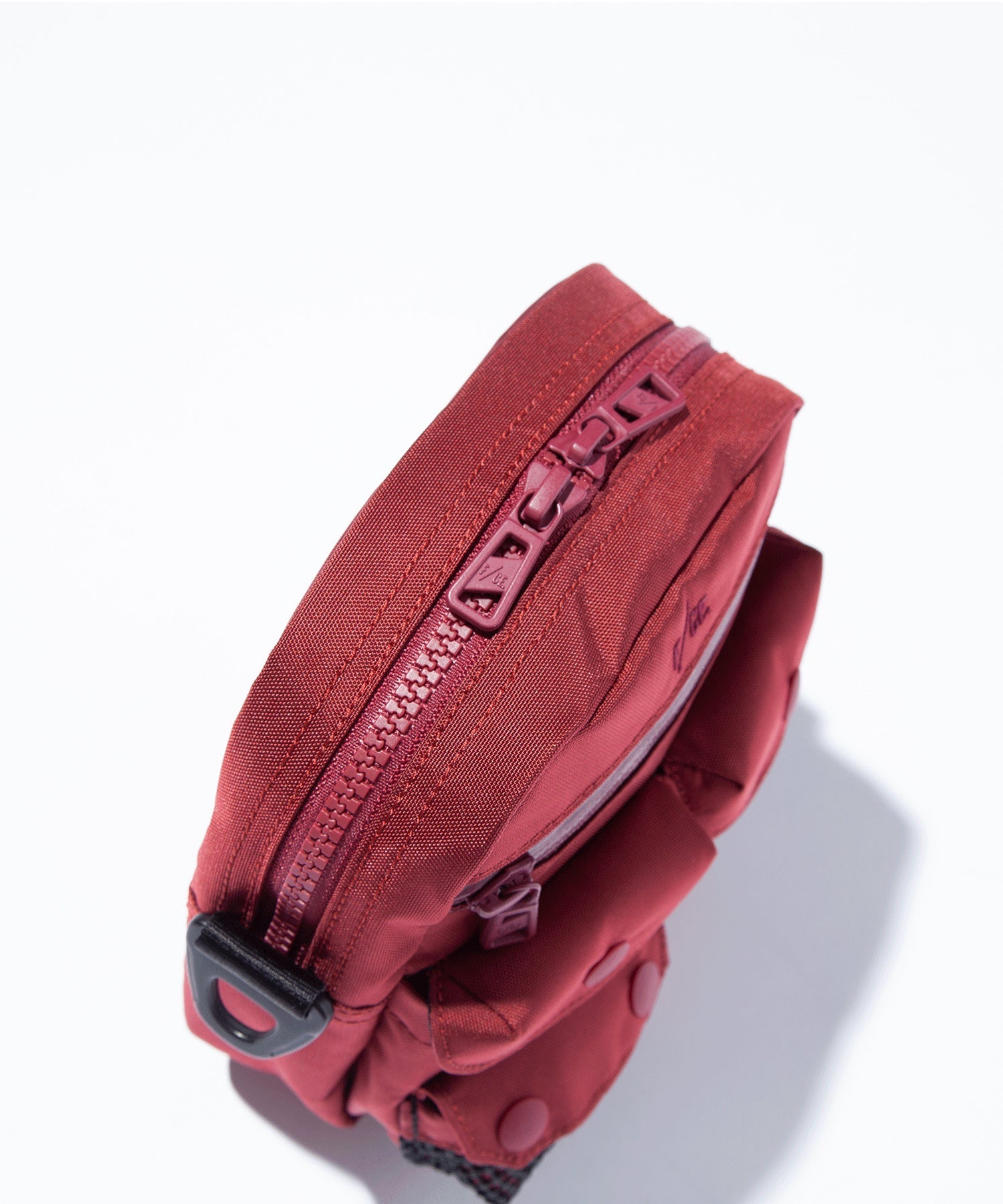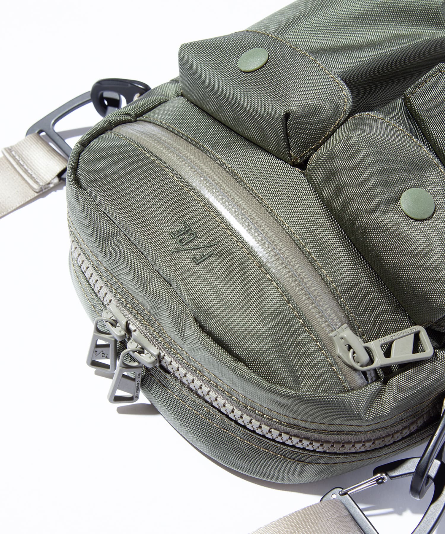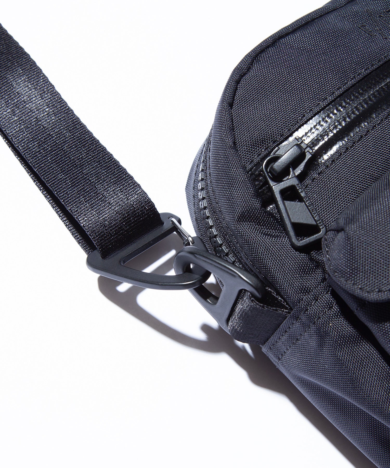It features lightweight aluminum details. a waterproof zip and webbing tape made from genuine seatbelt material to ensure strength and durability.