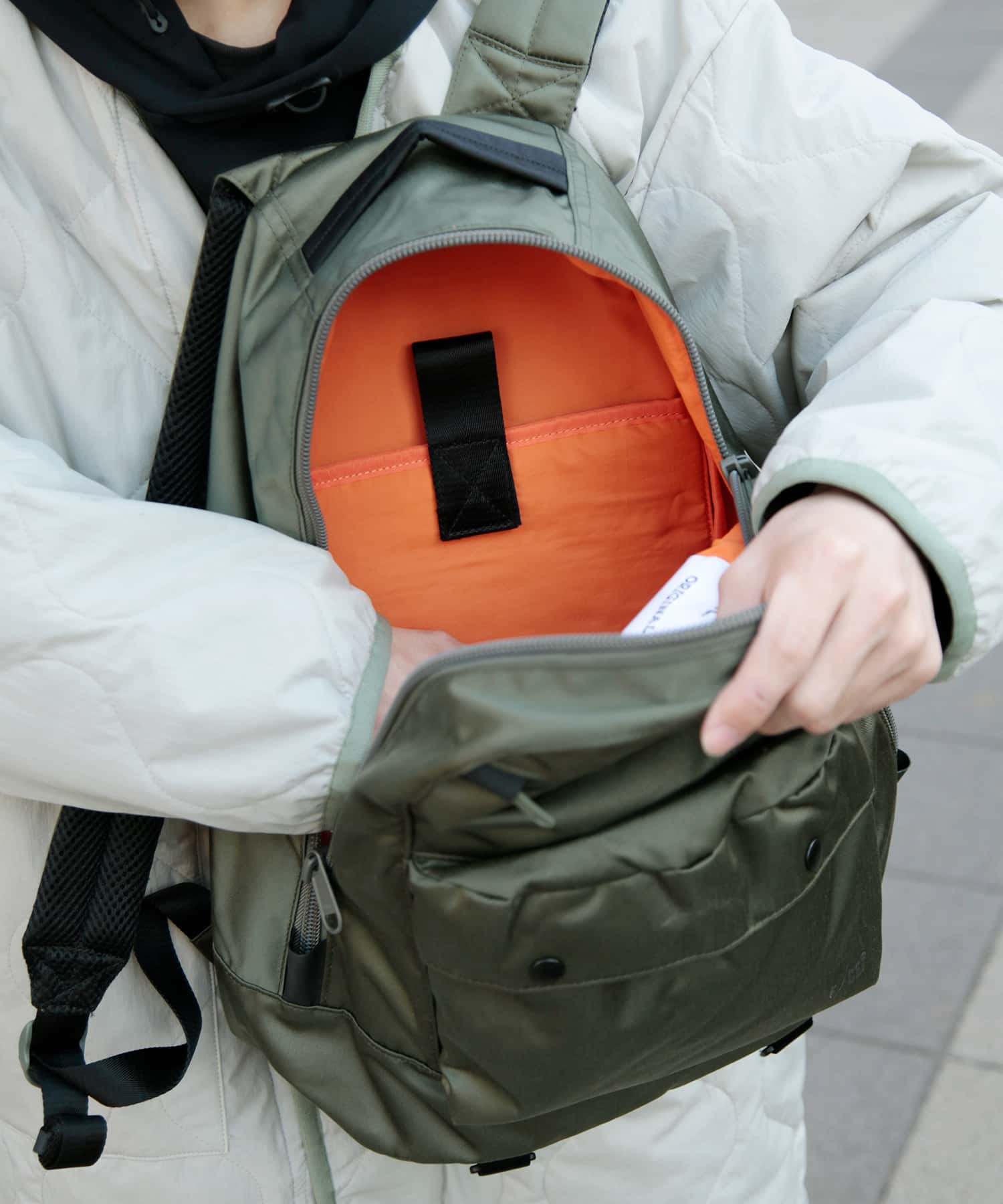 This bag is designed as a unisex item with the core material in the back only in the centre to make it look slimmer on the back.